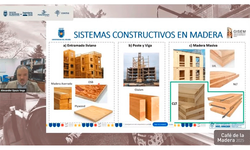 Alexander Opazo, académico del Depto. de Ing. Civil y Ambiental y director del Doctorado en Ingeniería, UBB – Presentación en 4to Café de la Madera de Madera21.