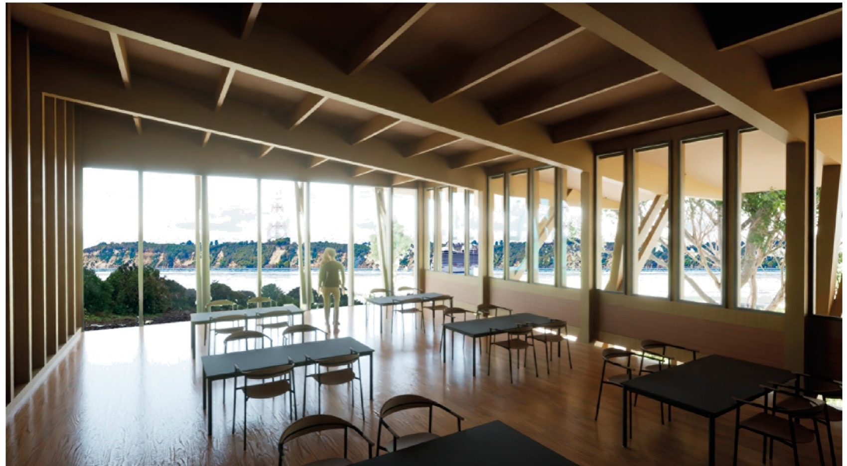 Sin embargo, convencer al mandante no dependía sólo del argumento conceptual, contó el arquitecto. Era necesario demostrar viabilidad técnica y económica. Fernández recordó que la entrega al concurso se realizó con presupuesto, cubicación y decisiones estructurales avanzadas porque “fue la única manera de convencer al mandante de que le convenía hacerlo en madera, que le podía salir económicamente más conveniente que en acero o en hormigón”.