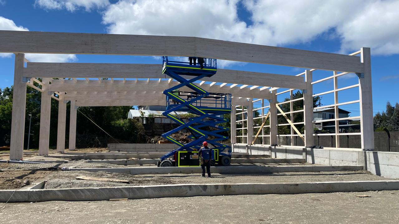 La relación de trabajo entre la oficina de arquitectura, la ingeniería y Lamitec es de larga data. “Con Ernesto Hernández trabajamos hace muchos años, y Lamitec nos provee y fabrica las maderas; en este caso también se encargaron del flete y el montaje”, explica el arquitecto Fernando González, con quien conversó Madera21 de CORMA. Esta coordinación permitió desarrollar en paralelo las fundaciones en obra y la fabricación de los elementos estructurales en planta, optimizando plazos y asegurando coherencia entre diseño, cálculo y montaje.