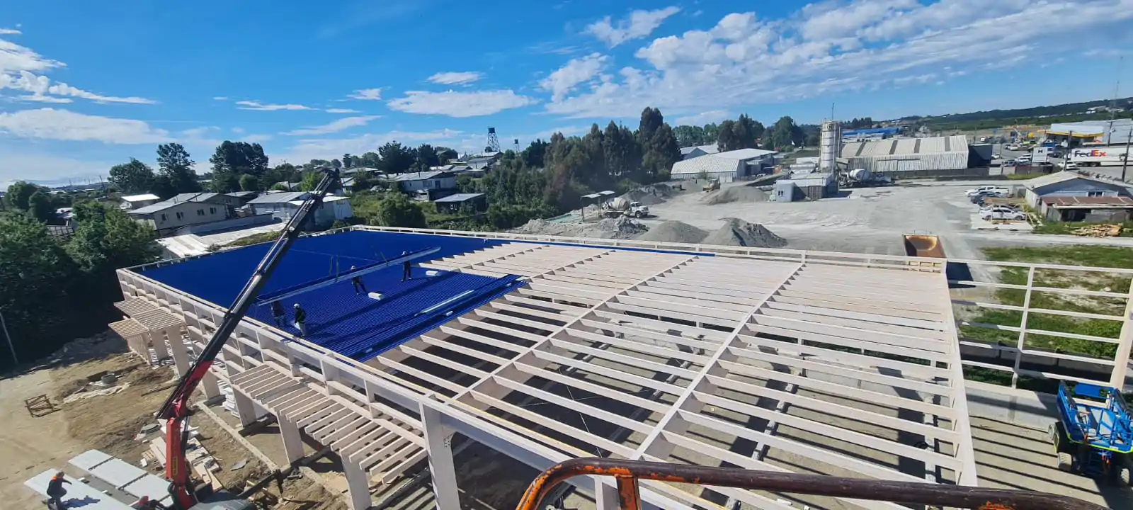 La obra fue desarrollada para Inmobiliaria Hurtado, empresa de la Región de Los Lagos que actúa como mandante del proyecto y el encargo consistió en cerrar el paño del conjunto de bodegas existente y aportar una etapa que dialogara con lo ya construido, manteniendo criterios de color y revestimientos, pero incorporando una estructura distinta y una lógica espacial flexible.