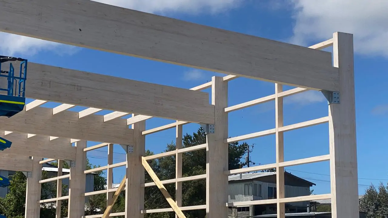 La relación de trabajo entre la oficina de arquitectura, la ingeniería y Lamitec es de larga data. “Con Ernesto Hernández trabajamos hace muchos años, y Lamitec nos provee y fabrica las maderas; en este caso también se encargaron del flete y el montaje”, explica el arquitecto Fernando González, con quien conversó Madera21 de CORMA. Esta coordinación permitió desarrollar en paralelo las fundaciones en obra y la fabricación de los elementos estructurales en planta, optimizando plazos y asegurando coherencia entre diseño, cálculo y montaje.