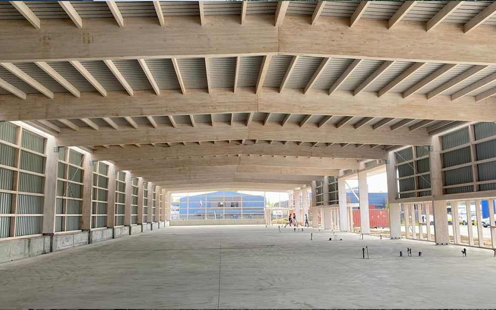 A ello se suma el impacto en las fundaciones. Al tratarse de un sistema más liviano, la estructura de madera permitió optimizar hormigones y armaduras, lo que también incide en el presupuesto total. En términos de desempeño frente al fuego y la corrosión, la solución adoptada responde al uso previsto —bodegas para productos secos— y a una condición interior que favorece la durabilidad del material. “Si hicimos todo el esfuerzo para protegerla y dejarla en una condición interior, lo que se almacene debe contribuir a mantener ese ambiente”, puntualiza el arquitecto.