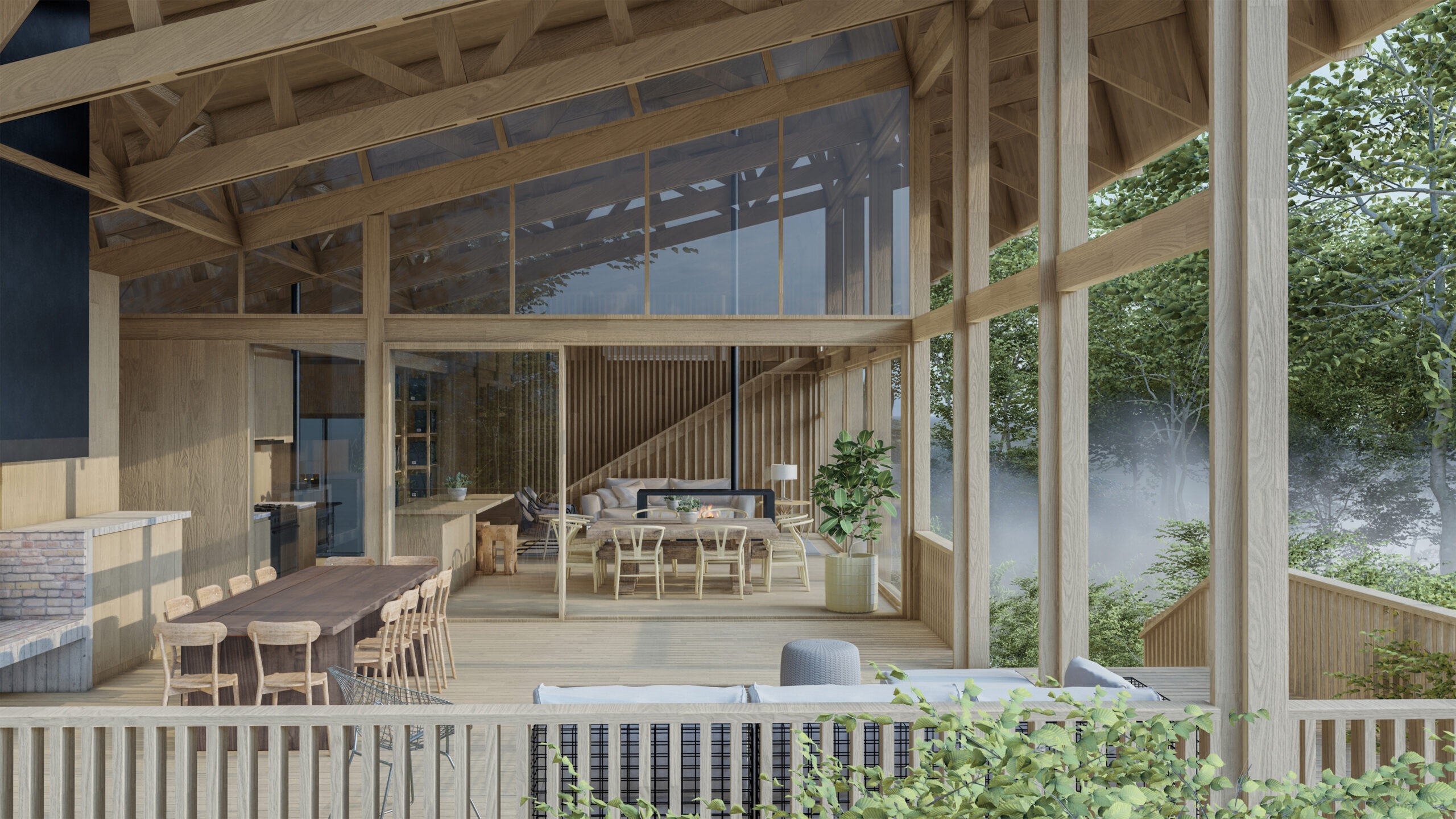 Emplazada en el entorno privilegiado del Lago Todos los Santos, la Casa Dosel propone una innovadora estructura en madera basada en una grilla modular y una cubierta reticulada continua que actúa como dosel, liberando amplias luces y articulando espacios abiertos, eficientes y en estrecho diálogo con el paisaje.