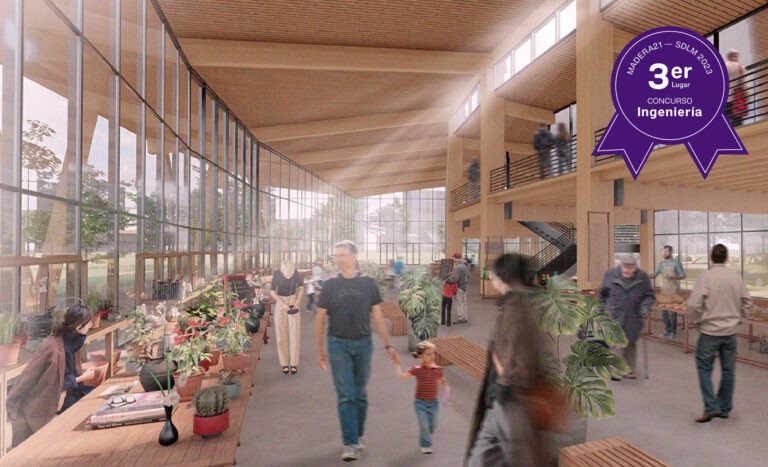 Anteproyecto de Galpones Estructurados en Madera Encolada de Cristóbal Reyes Gaete, con Pablo Guindos como profesor guía. Pontificia Universidad Católica de Chile.
