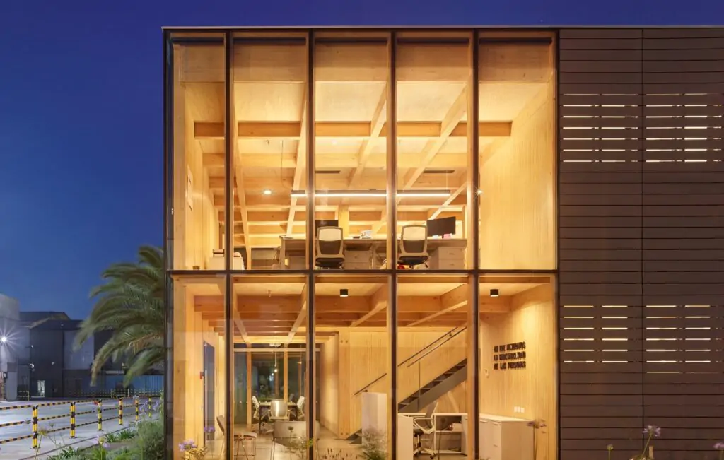 Yendo al origen de su metodología de elaboración, lo primero a recalcar sería la utilización de pino radiata. Los bosques de donde son extraídos son manejados responsablemente y con certificados FSC —Forest Stewardship Council— y PEFC —gestionados de forma sostenible—. Esto hace que las construcciones que utilizan esta madera tengan la certeza de que no están deforestando al haber optado por usarla y que, efectivamente, es sustentable.