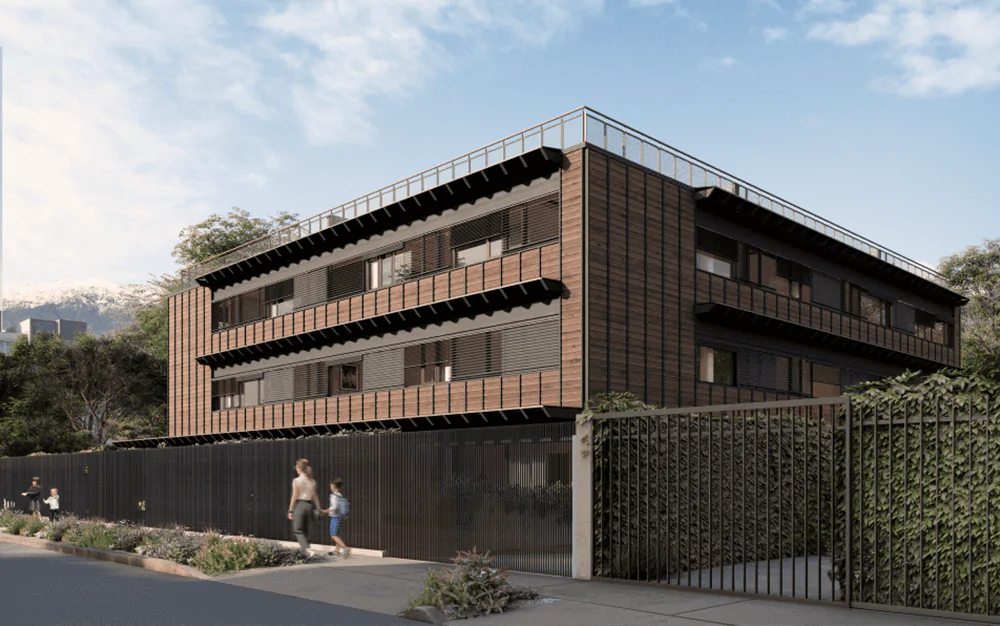 El Edificio Ruperto Correa – desarrollado por Tecton y diseñado por el arquitecto Cristián Izquierdo Lehmann – se inserta en un momento de transformación para la arquitectura y la construcción en Chile donde la madera estructural, acompañada de elementos que posibilitan la eficiencia energética comienzan a definir nuevas formas de proyectar viviendas en la ciudad. En ese contexto, el proyecto aborda una demanda habitacional en Providencia y a su vez contribuye a posicionar la construcción en madera como una alternativa viable y alineada con los desafíos de descarbonización del sector.