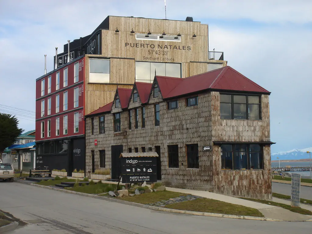 Seis niveles, 41 habitaciones y un Spa en el último piso. El hotel NOI Indigo Patagonia se ubica frente al mar en Puerto Natales. Diseñado por el arquitecto Sebastián Irarrázabal, cuenta con una fachada de aspecto industrial pesquero, de planchas de fierro pintadas y de madera impregnada en sus costados, manteniendo así la estética de la arquitectura propia del seno de Nueva Esperanza.