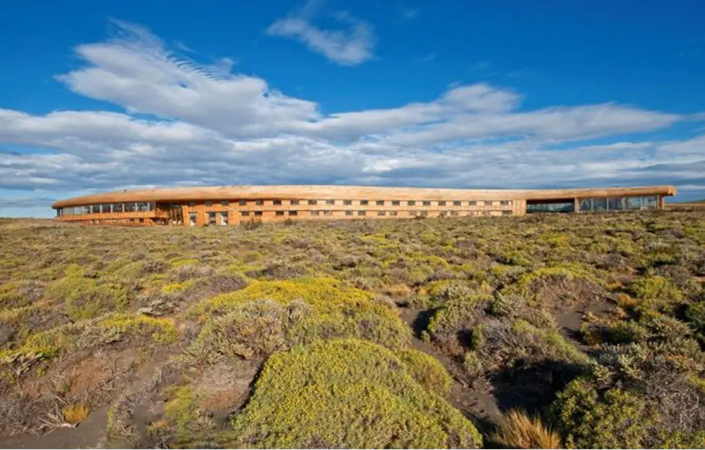 Con vista al azul intenso del Lago Sarmiento y con una vista privilegiada al Macizo del Parque Nacional Torres del Paine y en diálogo con la inmensidad del paisaje magallánico, reposa el Hotel Tierra Patagonia, con una arquitectura en madera que pareciera estar trazada por el viento austral.