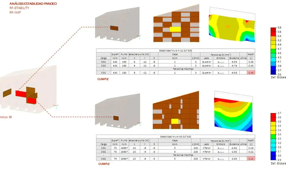 Dentro de las principales conclusiones del estudio, se planteó que el modelo aislaba parámetros para poder aplicar principios de diseño y lograr una optimización del material; que las iteraciones a través de los parámetros estructurales reflejaban una optimización del mismo; que se logró formular una evaluación estructural primaria en base a los parámetros establecidos por la NCH 1198 y el Eurocódigo, para un modelo estructural en CLT; y que la identificación y lectura de los elementos de losas y muros más desfavorables, permite optimizar el material del prototipo, fortaleciendo estos elementos.