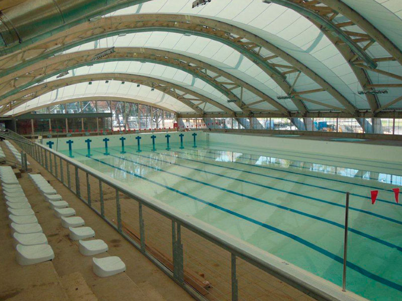 Chile cuenta con una serie de obras donde la ingeniería en madera ha abordado programas de alta exigencia. Entre ellas se encuentra la cubierta de la piscina olímpica del Parque O’Higgins, proyecto desarrollado en 2012 para proteger el recinto de natación y sus graderías mediante una estructura que combina marcos de madera laminada y una membrana textil tensada, aplicada a una piscina de dimensiones olímpicas.