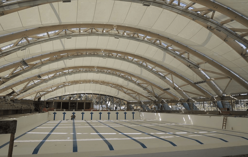 En Santiago, una cubierta ejecutada en 2012 muestra cómo la madera laminada puede resolver estructuras de gran escala en equipamientos deportivos y dialogar con diferentes sistemas – en este caso, el textil tensado- en una obra que sigue operativa y que más tarde sumó mejoras energéticas en su funcionamiento. En esta nota recordaremos algunos detalles de la cubierta para la piscina olímpica del Parque O’Higgins.