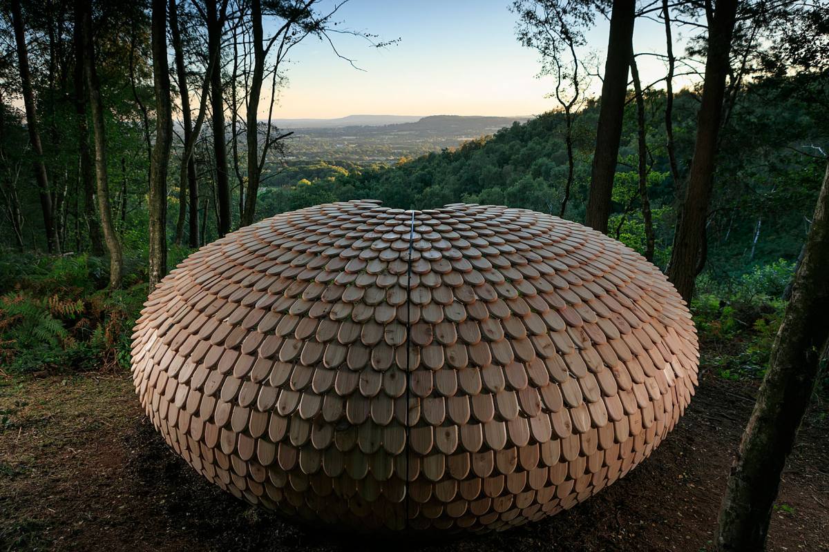 Entre bosques y colinas, un refugio de madera reúne memorias, mensajes y vistas abiertas al horizonte, convirtiéndose en uno de los hitos más íntimos y emotivos del arte público en Surrey, Inglaterra.