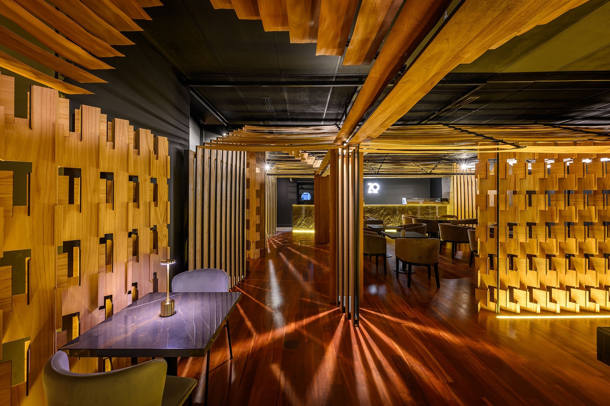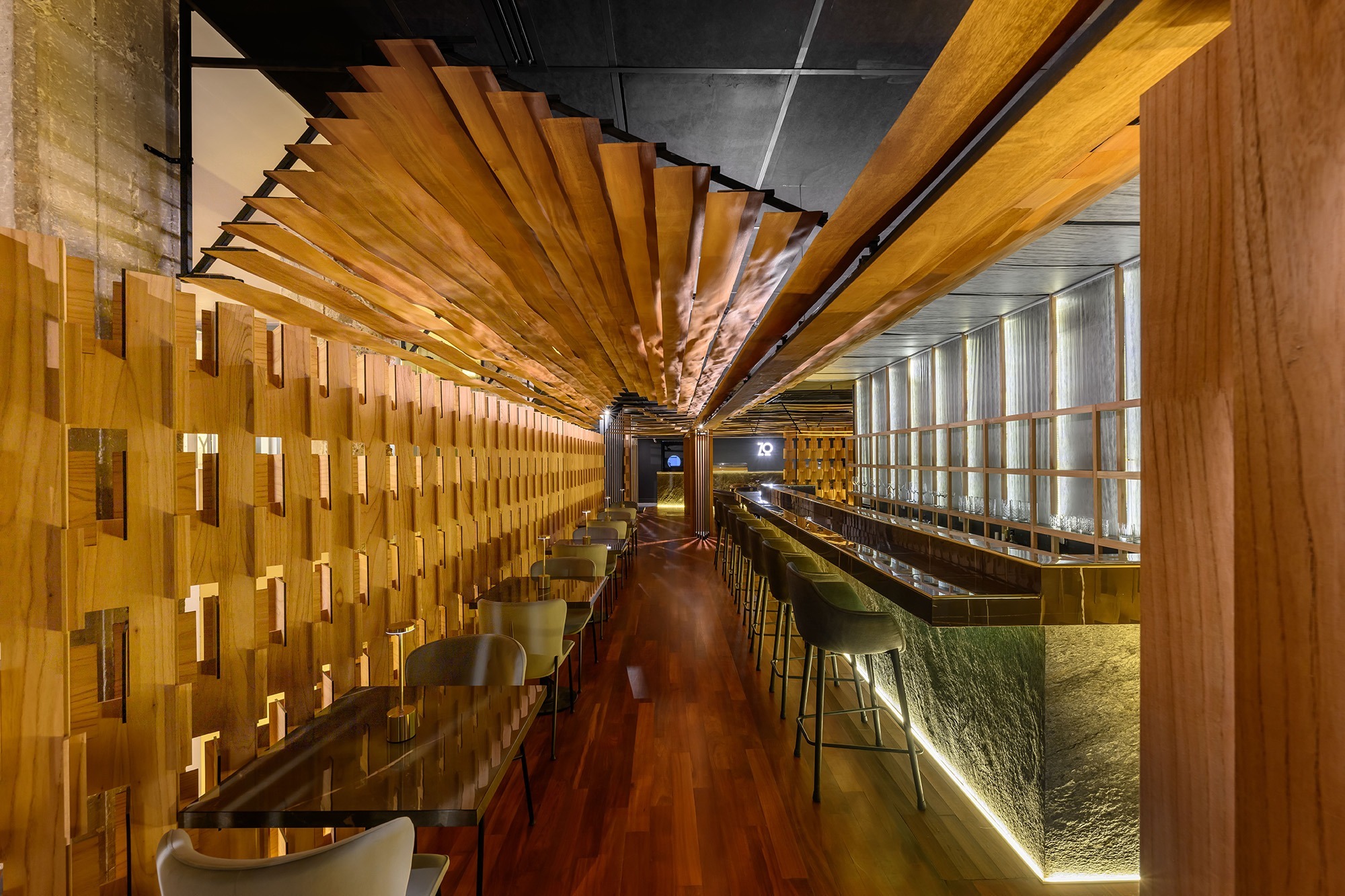 ZO es un restaurante especializado en cocina nikkei, con una trayectoria consolidada en el ámbito gastronómico. En el marco de la apertura de su nueva sucursal, ubicada en la planta baja de un hotel y dentro de una dinámica zona comercial, se proyectó un espacio de identidad fuerte e impactante, capaz de captar la atención de los transeúntes y reforzar la nueva imagen de la marca.