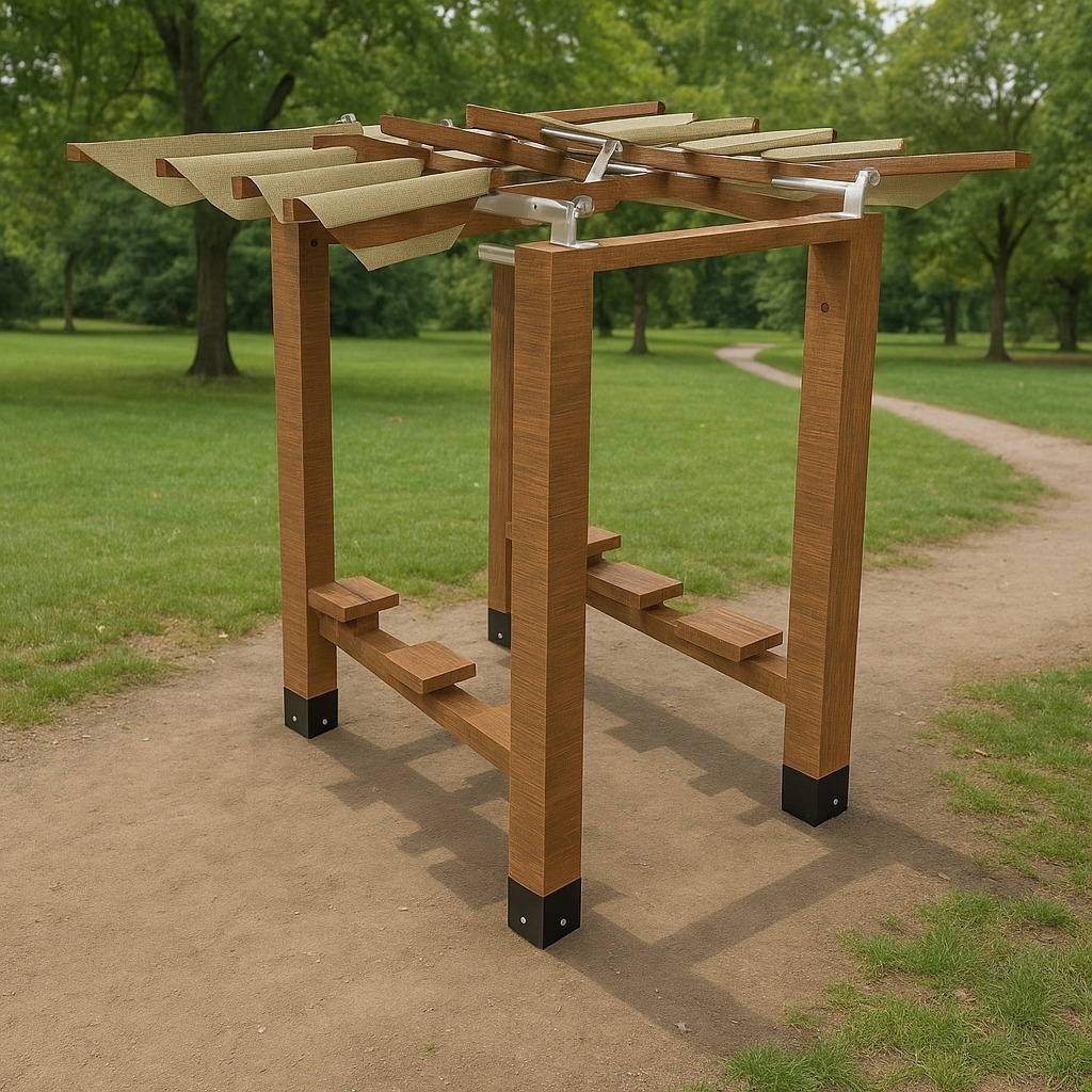 Aeris responde funcionalmente a las necesidades del espacio público contemporáneo mediante una estructura que proporciona sombra efectiva, fomenta la interacción y enriquece la experiencia del usuario. Su diseño considera: