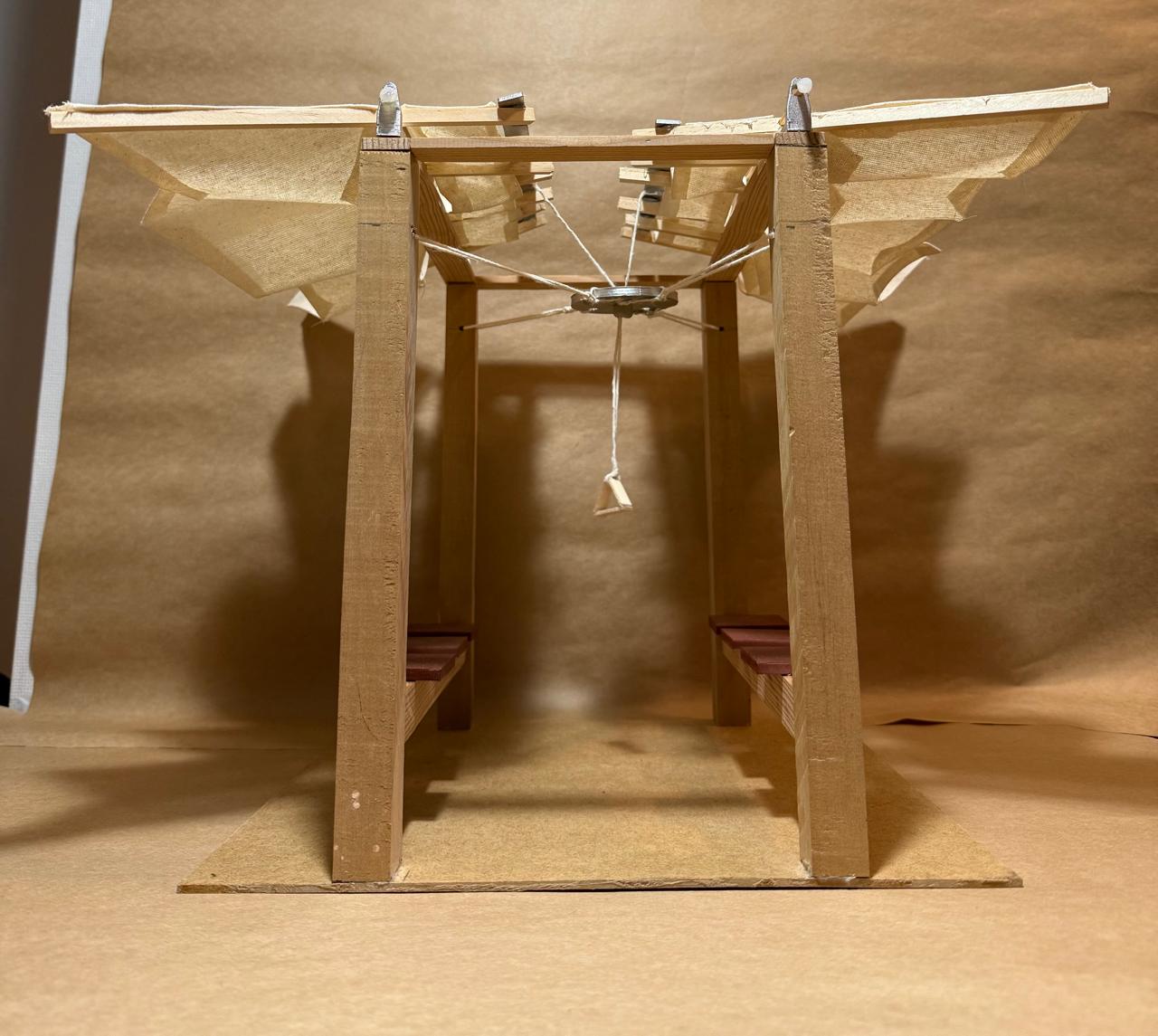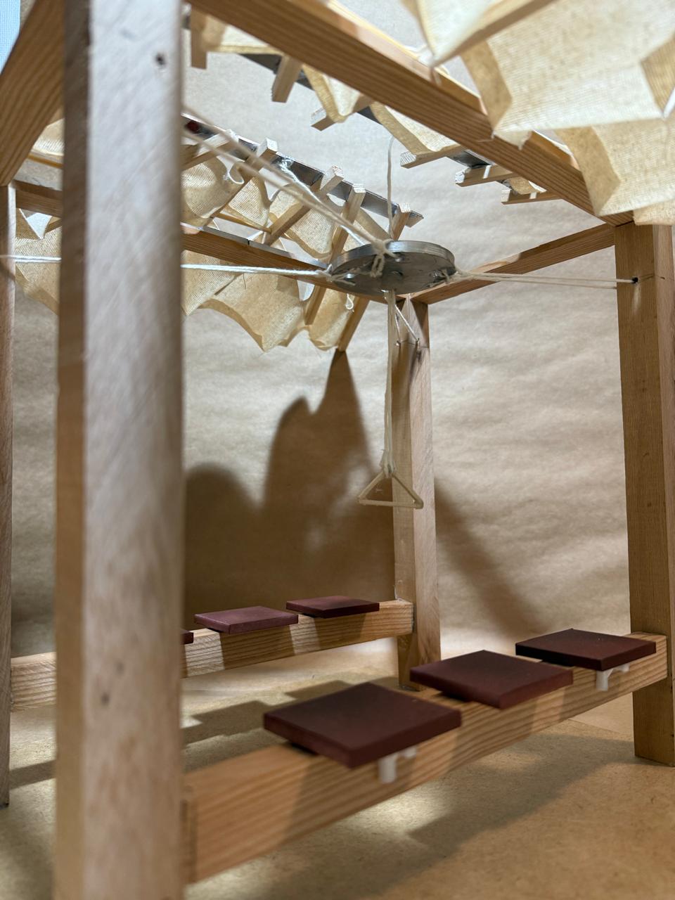 Nuestra propuesta conceptual es una instalación urbana en madera que, mediante una estructura alada inspirada en el concepto de vuelo, genera sombra y promueve una experiencia de contemplación, pausa y conexión sensorial con lo natural. Además, su mecanismo invita al usuario a interactuar activamente con el dispositivo, estableciendo una relación lúdica y participativa para el usuario.