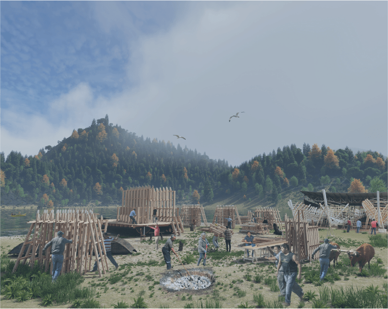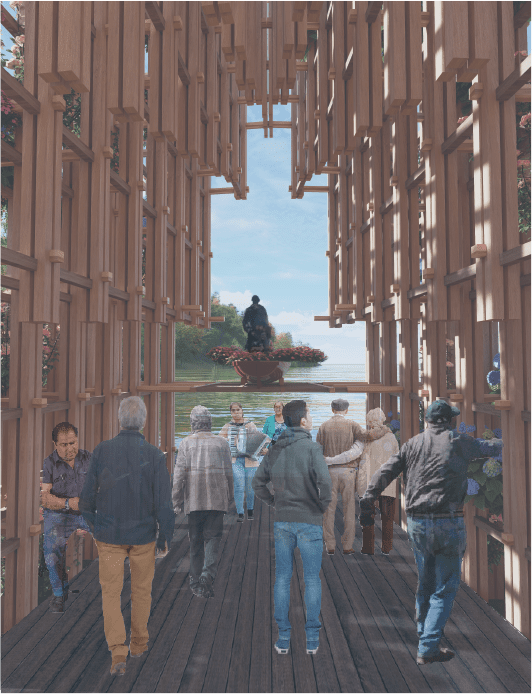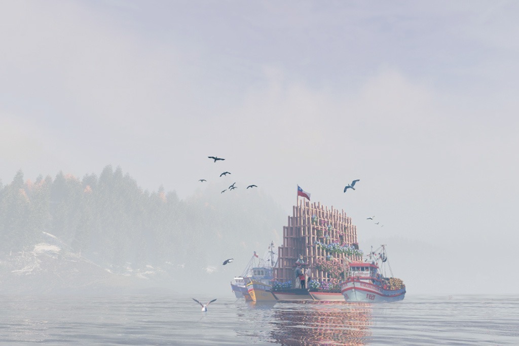 El proyecto entrelaza mito, arquitectura y comunidad en un objeto flotante que cumple funciones de espacio social y de expresión cultural, satisfaciendo la necesidad de infraestructura móvil-efímera. Reinterpreta el mar como espacio público, propone nuevas formas de habitar y pone en valor saberes ancestrales con soluciones contemporáneas, revitalizando el oficio carpintero y agregando relevancia al patrimonio intangible.