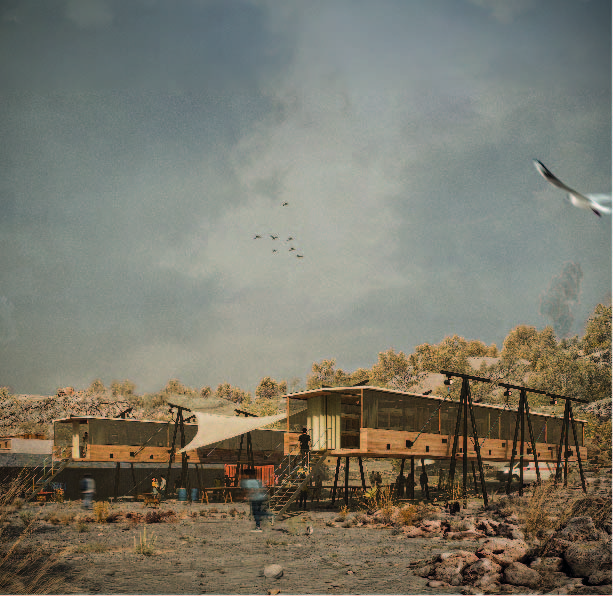 B.A.S.E. es una propuesta arquitectónica de emergencia que surge como respuesta inmediata frente a catástrofes naturales, especialmente incendios forestales. Pensado para actuar en los primeros días tras el desastre, el proyecto busca contener, asistir y organizar a las comunidades afectadas, ofreciendo infraestructura básica, logística y habitabilidad digna. Se compone de un sistema modular suspendido sobre el terreno, que permite montar rápidamente cocinas, enfermerías, áreas de descanso y espacios de planificación comunitaria. Mediante elementos prefabricados de madera y cubiertas textiles, el conjunto se emplaza sin faenas húmedas ni maquinaria pesada, adaptándose a distintos terrenos. Su organización espacial se articula entre dos naves principales y un patio central cubierto, facilitando el encuentro y la distribución de ayuda.