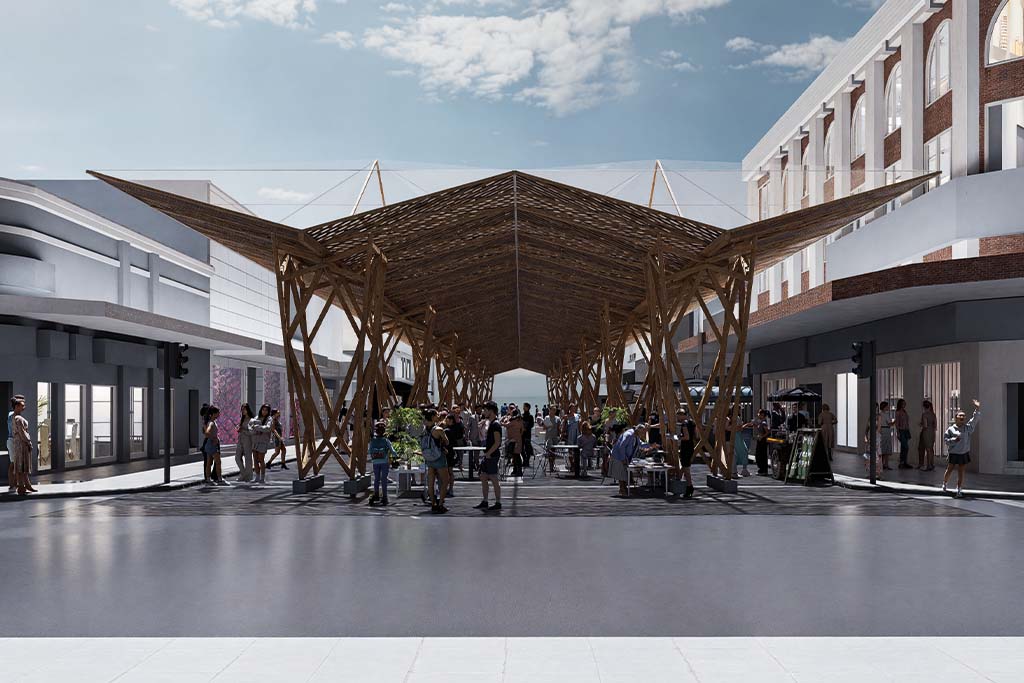 Desde lo urbano, la propuesta nace de una lectura crítica del centro de Valdivia, donde el déficit de sombra y vegetación urbana ha sido creciente. En este sentido, el proyecto no sólo resuelve un problema térmico puntual, sino que restituye el valor simbólico, ambiental y social del espacio público, generando condiciones para una vida urbana más habitable. Además, al utilizar madera local, promueve encadenamientos productivos sostenibles y una estética territorial coherente con el paisaje del sur de Chile.