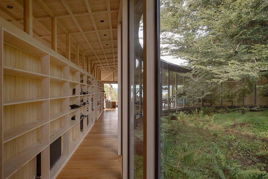 El proyecto busca, en cada una de sus decisiones arquitectónicas, incorporar la menor cantidad de elementos estructurales, y así alivianar el peso o cuantía del esqueleto. La idea fue alejarse del uso decorativo de piezas de madera, y así construir con la mayor economía de elementos. Se eligió la madera porque es un tipo de construcción que permite en su expresión espacial interior, revelar a los ocupantes, cada uno de los elementos constructivos de la obra. Pilares, envigados, costanereados, forros, etc, quedan todos al descubierto en el proyecto, formando parte esencial de la experiencia del espacio interior.