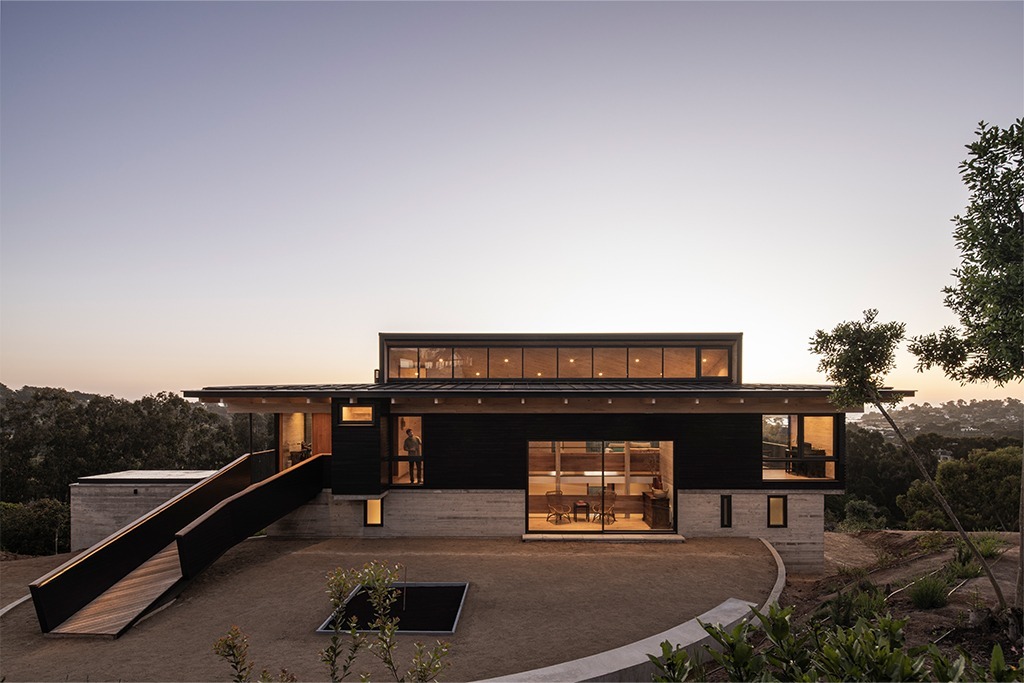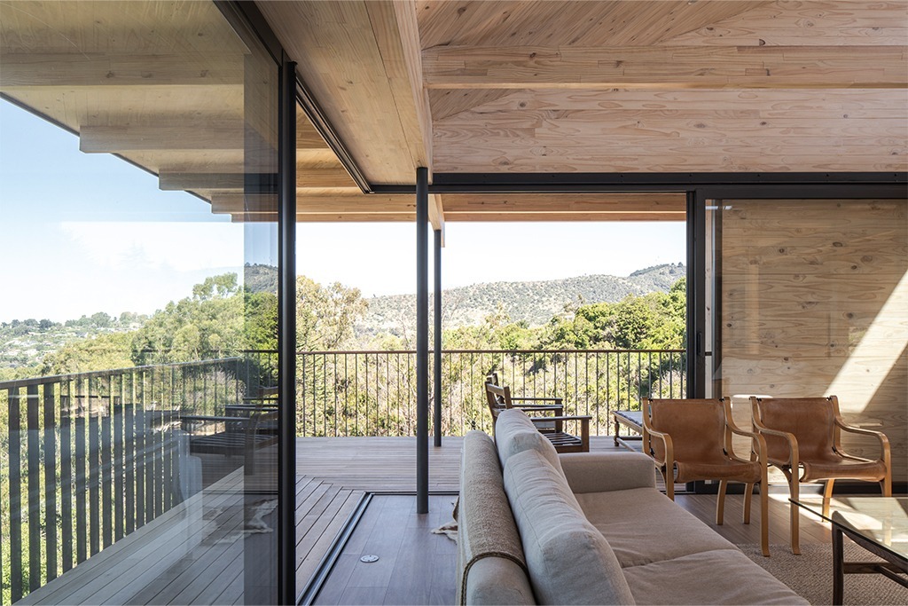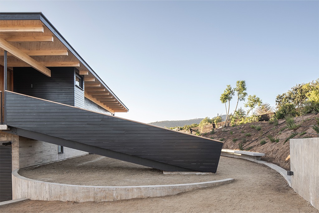 En contraposición a la típica configuración de casa de cerro que define una espalda cerrada y un frente abierto, esta casa se configura con un doble frente y multiplica las vistas en diferentes direcciones para apreciar de distintos modos la rica geografía y el paisaje del lugar. Las vistas se revelan de a poco, cada una es un cuadro distinto.
