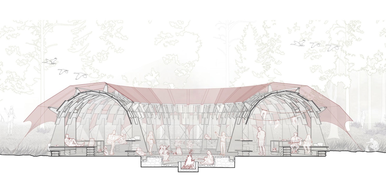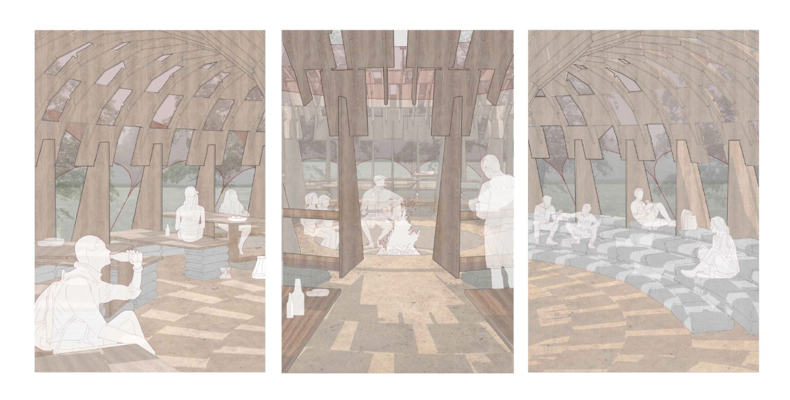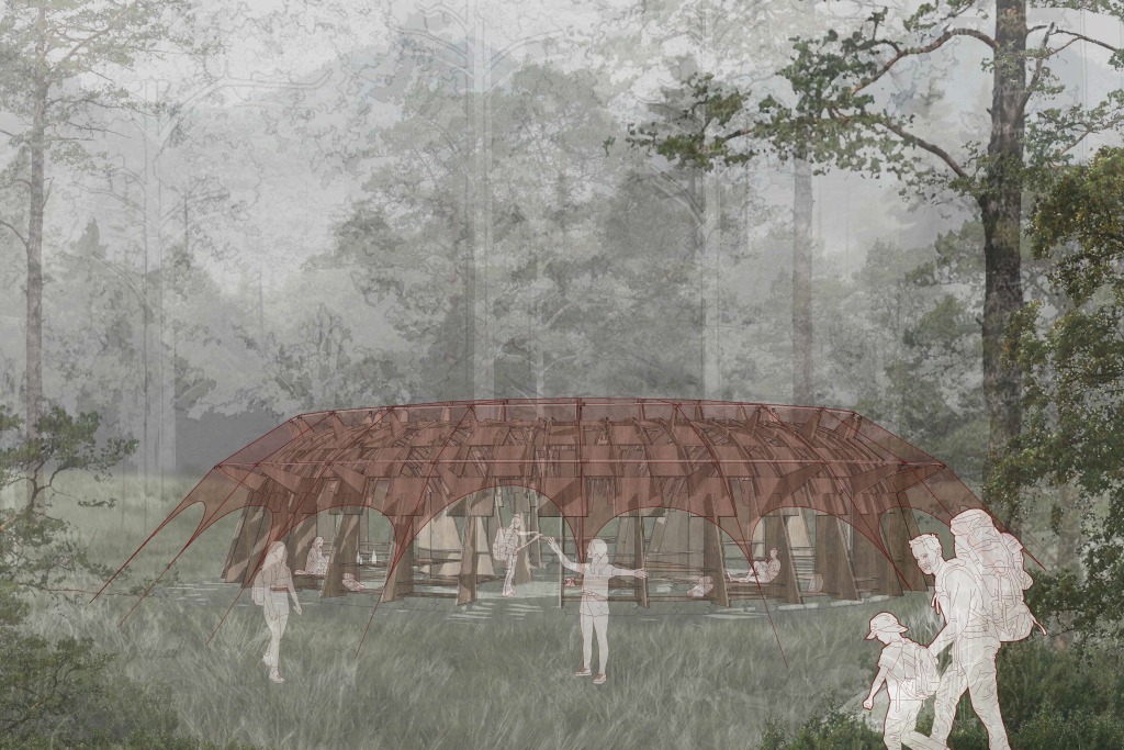 La propuesta surge ante la falta de infraestructura en parques del sur de Chile, particularmente en el corredor natural de la Carretera Austral, que cada verano recibe una alta afluencia de visitantes. Frente a esta necesidad, el proyecto plantea una estructura efímera y adaptable a contextos tanto naturales como urbanos. En áreas naturales, se ubica en el acceso por Chaica, antes de los senderos del parque Alerce Andino, adoptando una geometría concéntrica que promueve el encuentro sin jerarquías, integrándose al paisaje sin intervenirlo. Durante el resto del año, la estructura se traslada al centro de Puerto Montt, transformándose en un espacio educativo y cultural que introduce la temática ambiental en el entorno urbano. De este modo, el proyecto propone un ritmo de ocupación intermitente, que se adapta tanto a las dinámicas del turismo como a las necesidades territoriales.