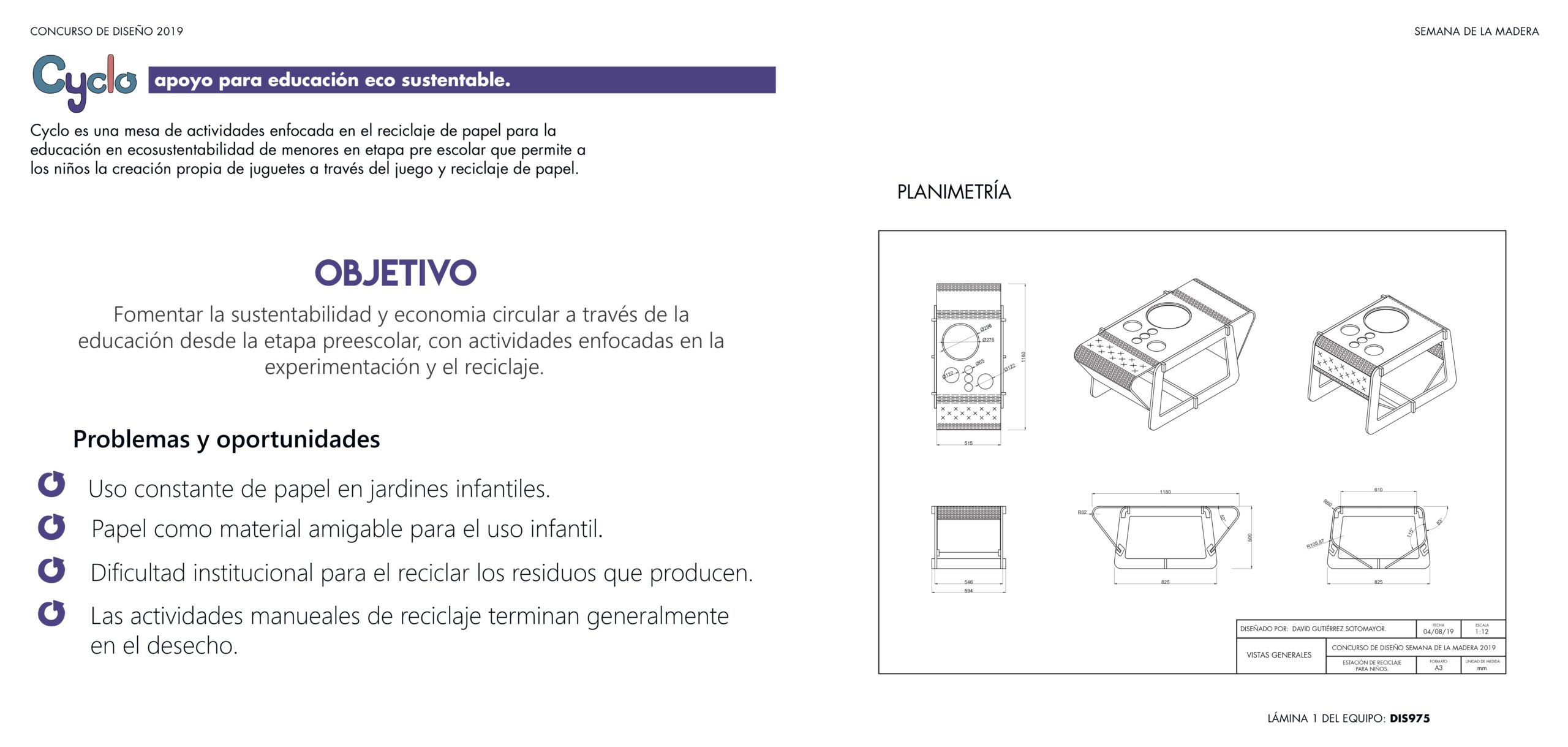 Cyclo es una "máquina" o centro de actividades pensado para los niños en etapa preescolar como un medio más eficiente de enseñanza de temáticas del medio ambiente por medio del reciclaje y la experimentación con papel.