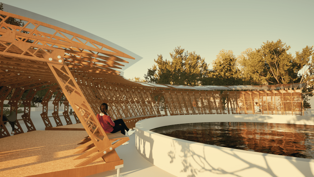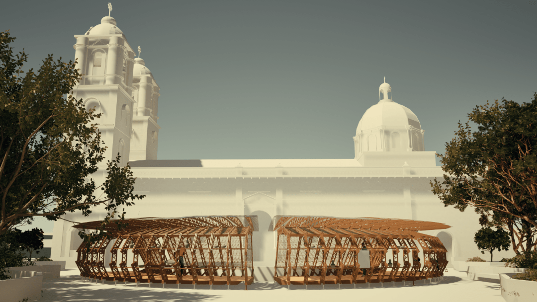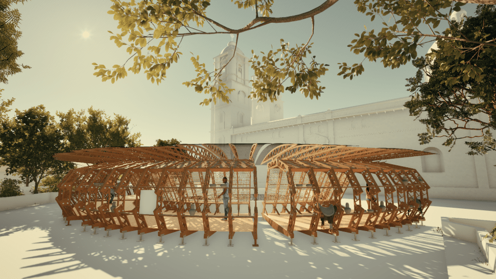 La propuesta es promotora en la utilización de un espacio público existente para la interacción cultural donde a través de un módulo efímero brinda a propios y extraños una muestra de lo que la comunidad Zenú representa para la ciudad. El diseño presenta también una muestra de las pintas zenúes en su sombra lo que genera en ciertas horas del día que sean reflejadas pintas como “Ojo de Pescao” en el suelo.