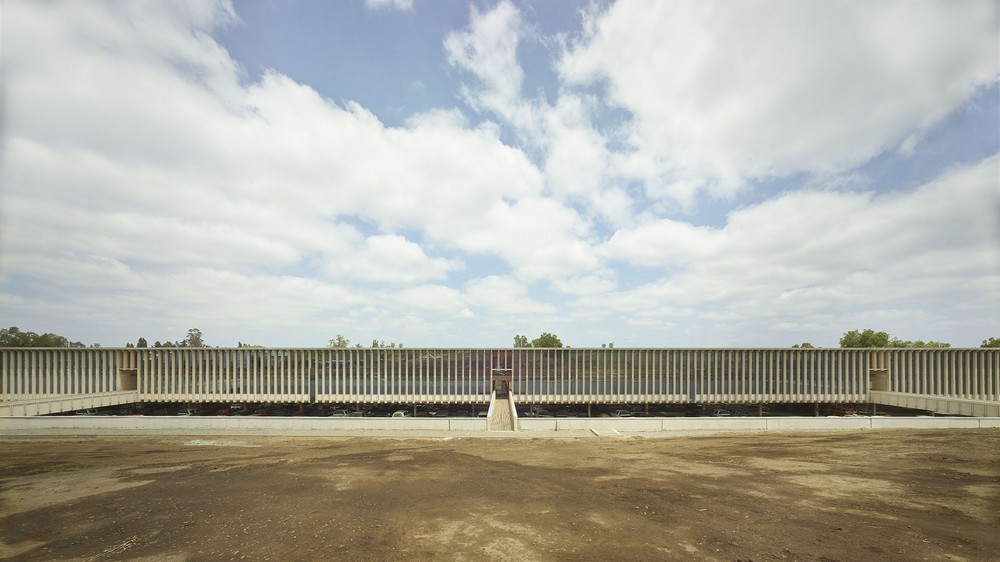 Según lo descrito, el edificio principal cubre y oculta la presencia de la mitad del extenso aparcadero vehicular requerido para dar lugar a 280 autos, que son el medio de transporte mayoritario de los usuarios.