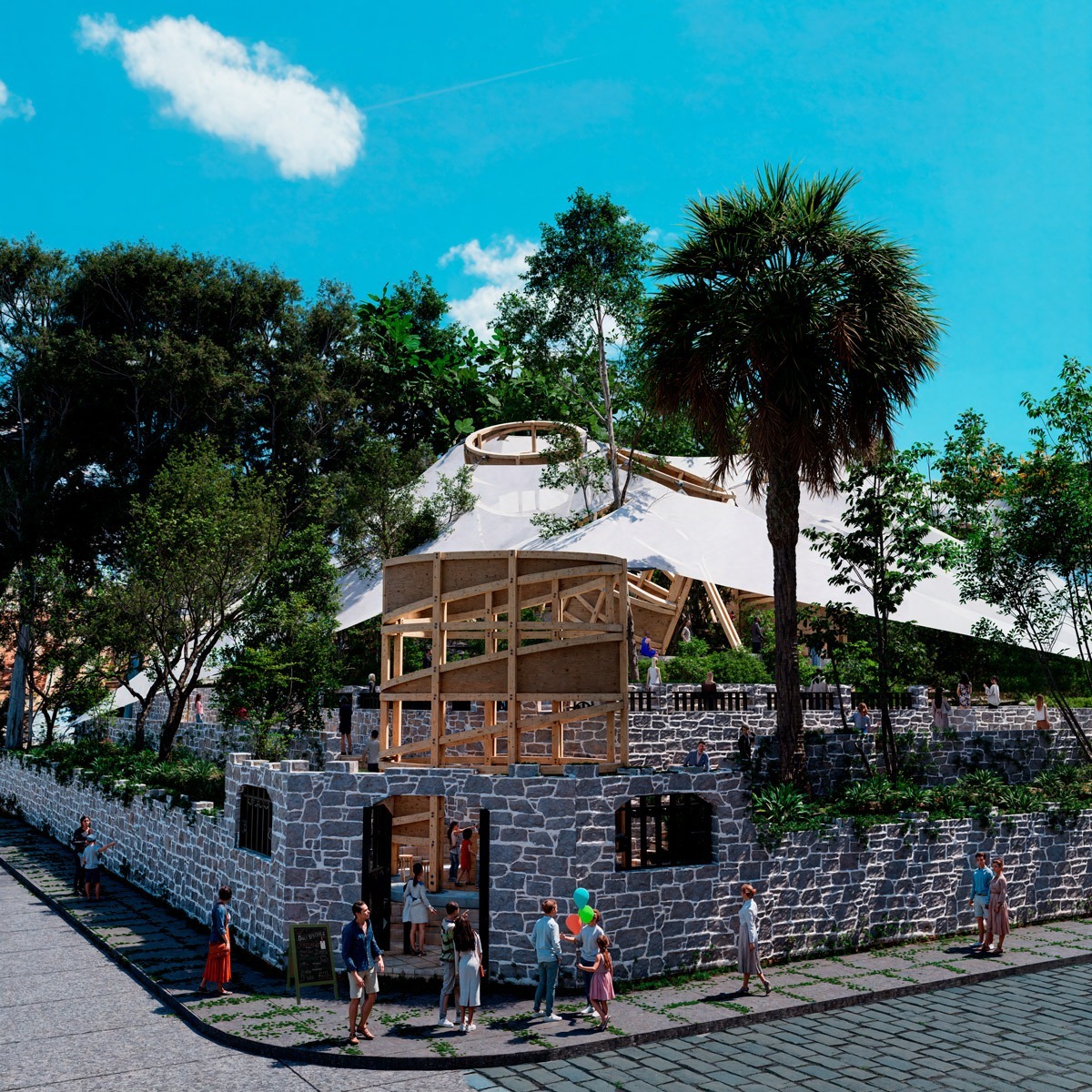 “El Festival bajo el dosel” es un proyecto que busca activar el cerro amarillo ubicado en la ciudad de Concepción y consta de una instalación efímera diseñada para dar vida a lo que fue olvidado, rescatando así nuestra historia penquista.