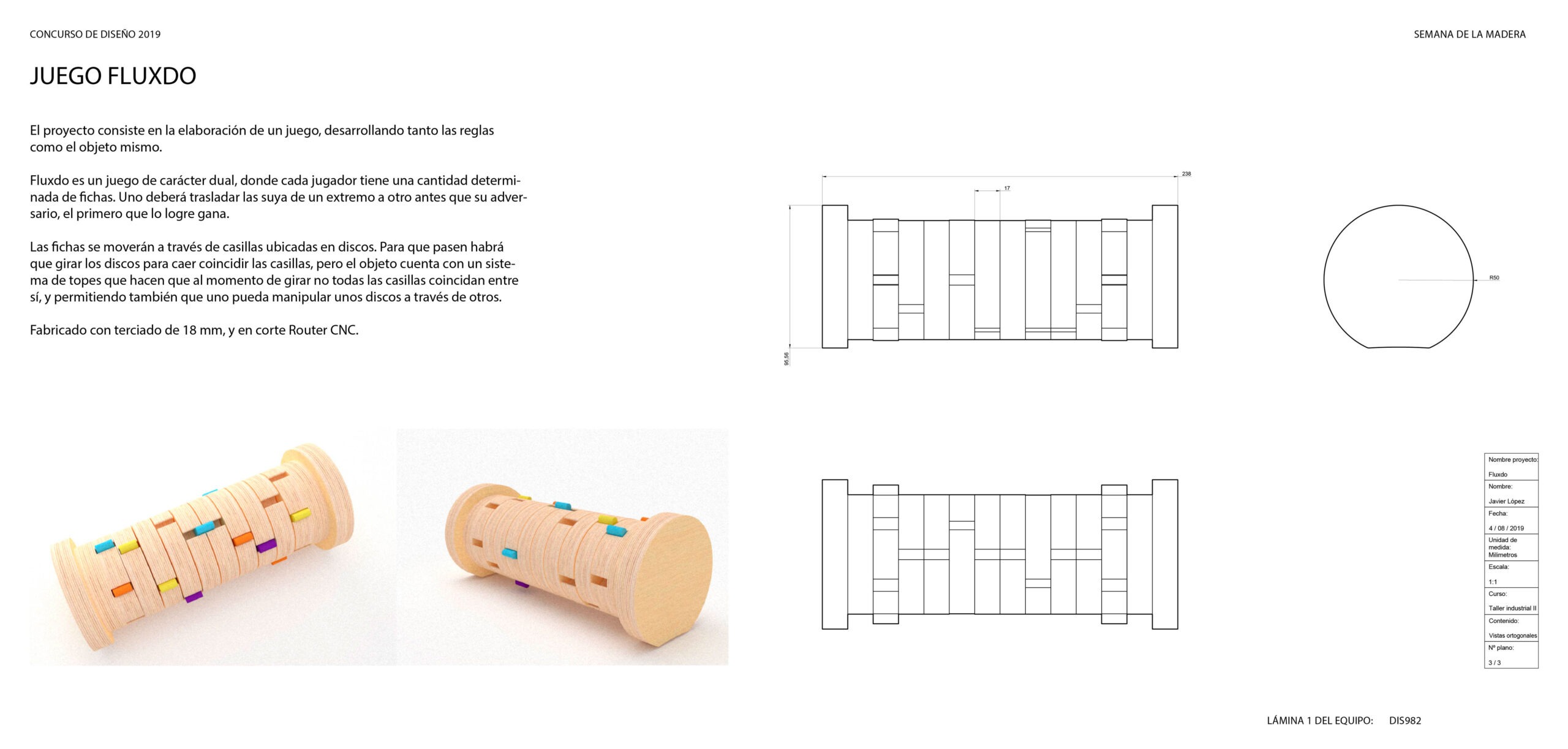 Fluxdo es un juego que tiene como base el enfrentamiento de dos jugadores a través de un mapa cilíndrico que se transforma a medida que se van moviendo las fichas. El concepto surge de una playa en específico, donde el mar va retirando la arena y va dejando rocas en su lugar, las cuales retira tiempo después para dejar arena nuevamente. A través a través del hecho y la dinámica en la que se da, se dio origen a un juego individual, de terciado 15mm cortado en Router CNC, que contaba con el sistema de fichas encajadas en disco que uno debía girar para trasladar tres tríos de fichas de un lado a otro. Así como el mar arrastraba arena y dejaba rocas, el juego consistía en llevarse unas fichas y dejar otras en su lugar.