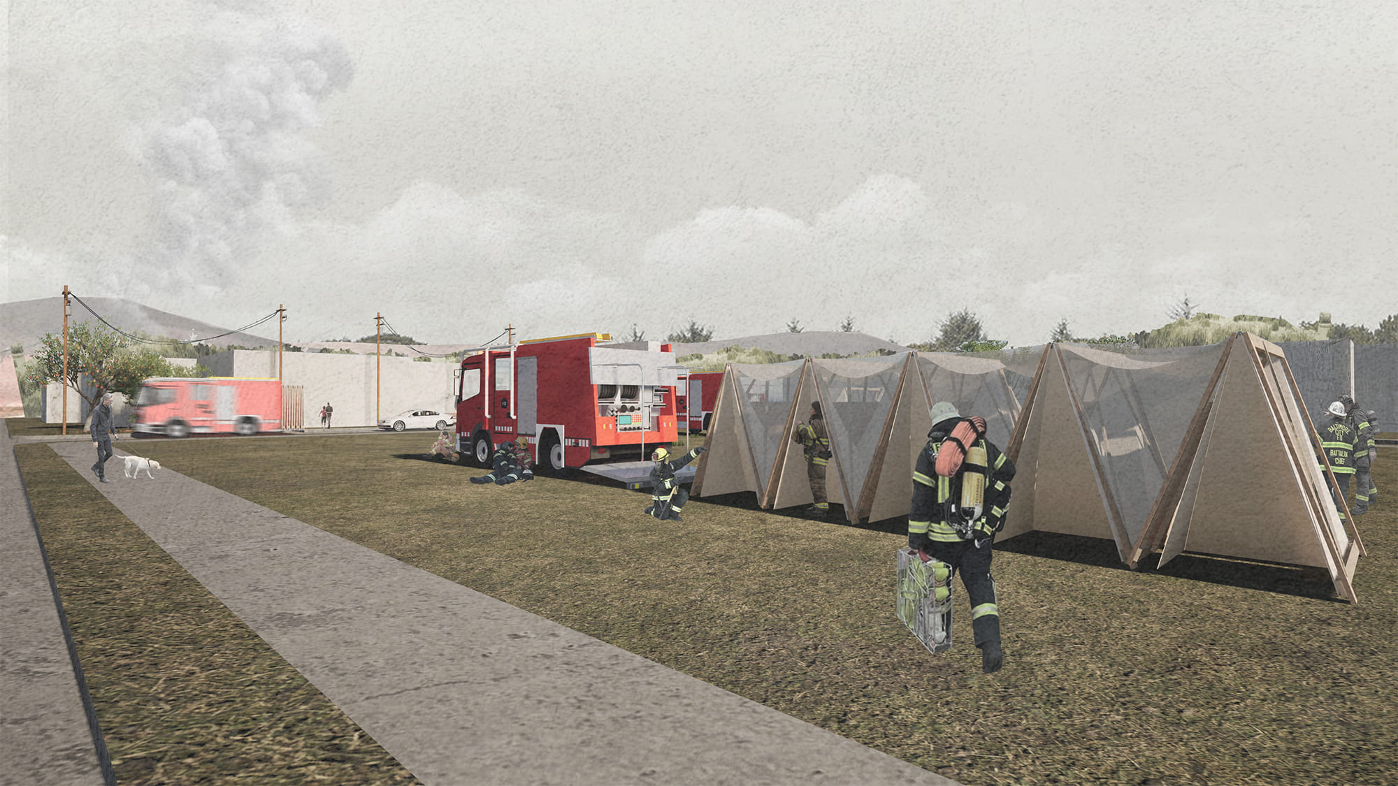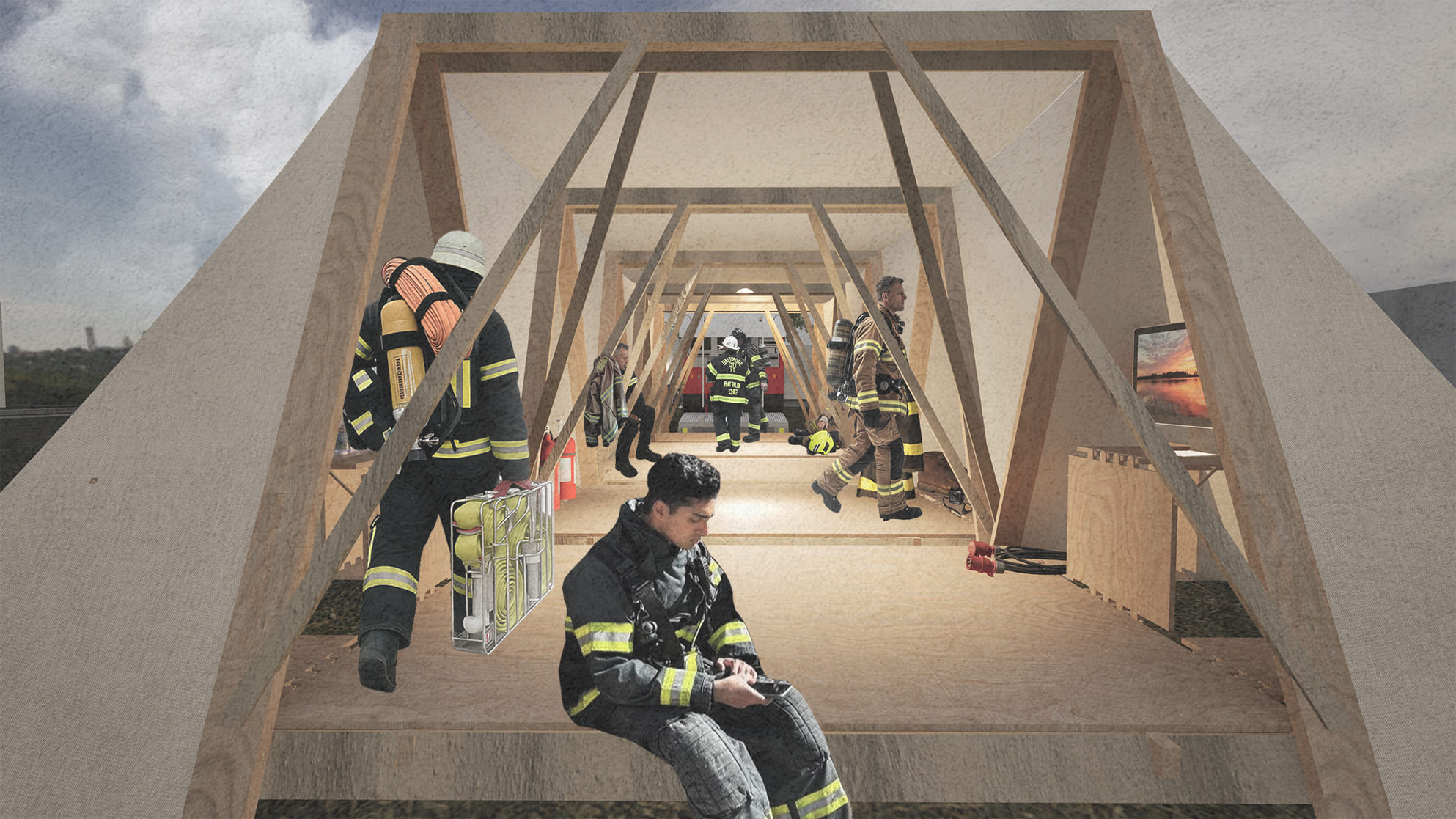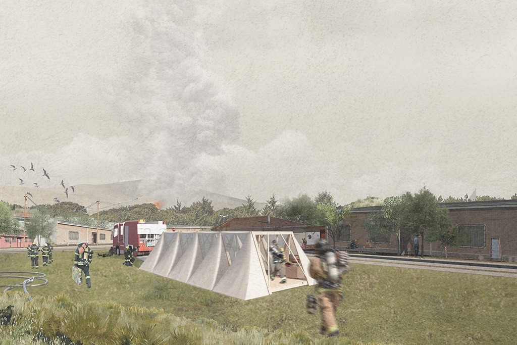 La propuesta surge ante la falta de espacios de resguardo para los bomberos, donde a partir de una solución simple, transportable y de rápida implementación, mejore las condiciones de habitabilidad de los voluntarios en contextos de emergencia