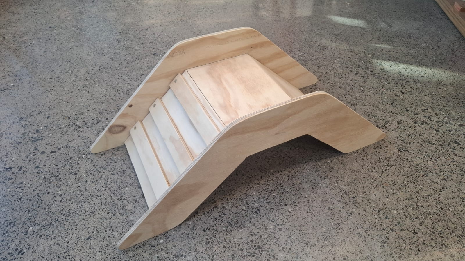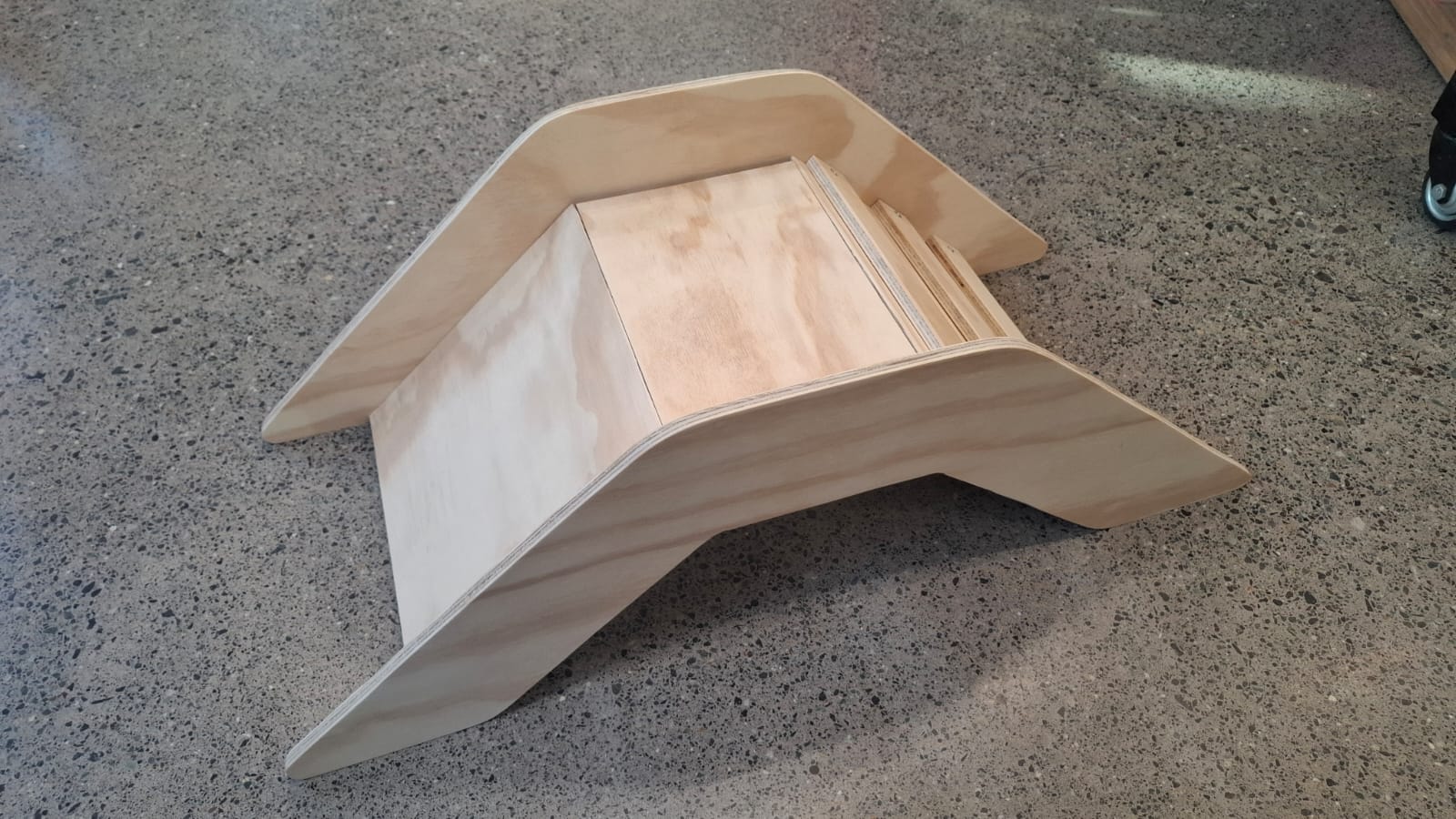 La idea está basada en un puente real para vehículos motorizados con partes móviles. Se mantuvo la idea del puente y de las piezas en forma de trapecio, para luego adaptar esos trapecios en un solo elemento, siendo lo que sería la pieza en forma de arco. Se decidió por un juego para niños para que los pequeños puedan conocerse al jugar, permitiendo que haya más interacción en el lugar entre ellos y hasta los padres puedan charlar entre sí, dando como resultado una mejor convivencia social entre los que se encuentren en ese lugar. Está escala 1:2, con 75 cm. de largo, 30 cm. de ancho y 25 cm. de alto