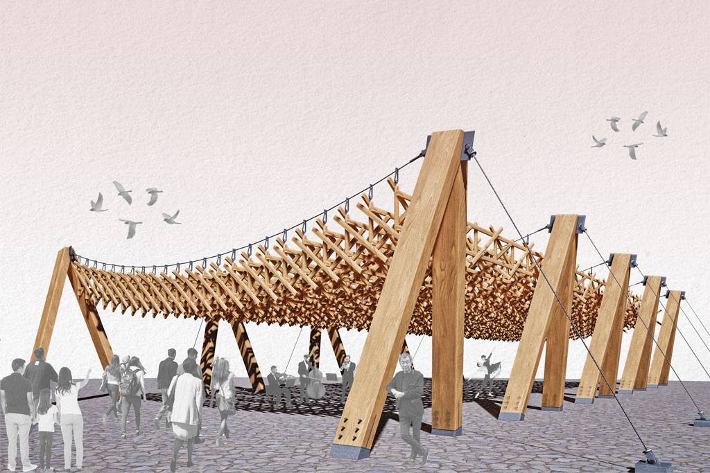 La innovación de esta propuesta radica en su capacidad de conjugar expresión conceptual, eficiencia técnica y adaptabilidad territorial. Es arquitectura efímera, desmontable y transportable, capaz de generar valor urbano sin dejar huella permanente. Su estructura modular permite replicarse o expandirse, adaptándose a distintas escalas y programas. Más allá que una forma llamativa, lo que distingue al proyecto es su capacidad de transformar un sistema estructural común en una experiencia espacial extraordinaria. La disposición evidencia su eficiencia constructiva y su potencial expresivo. La madera deja de ser solo soporte para convertirse en envolvente visual. De esta forma, la nube construida invita a ser recorrida, a detenerse bajo su sombra, a mirar hacia arriba y sentir el espacio como un refugio temporal.