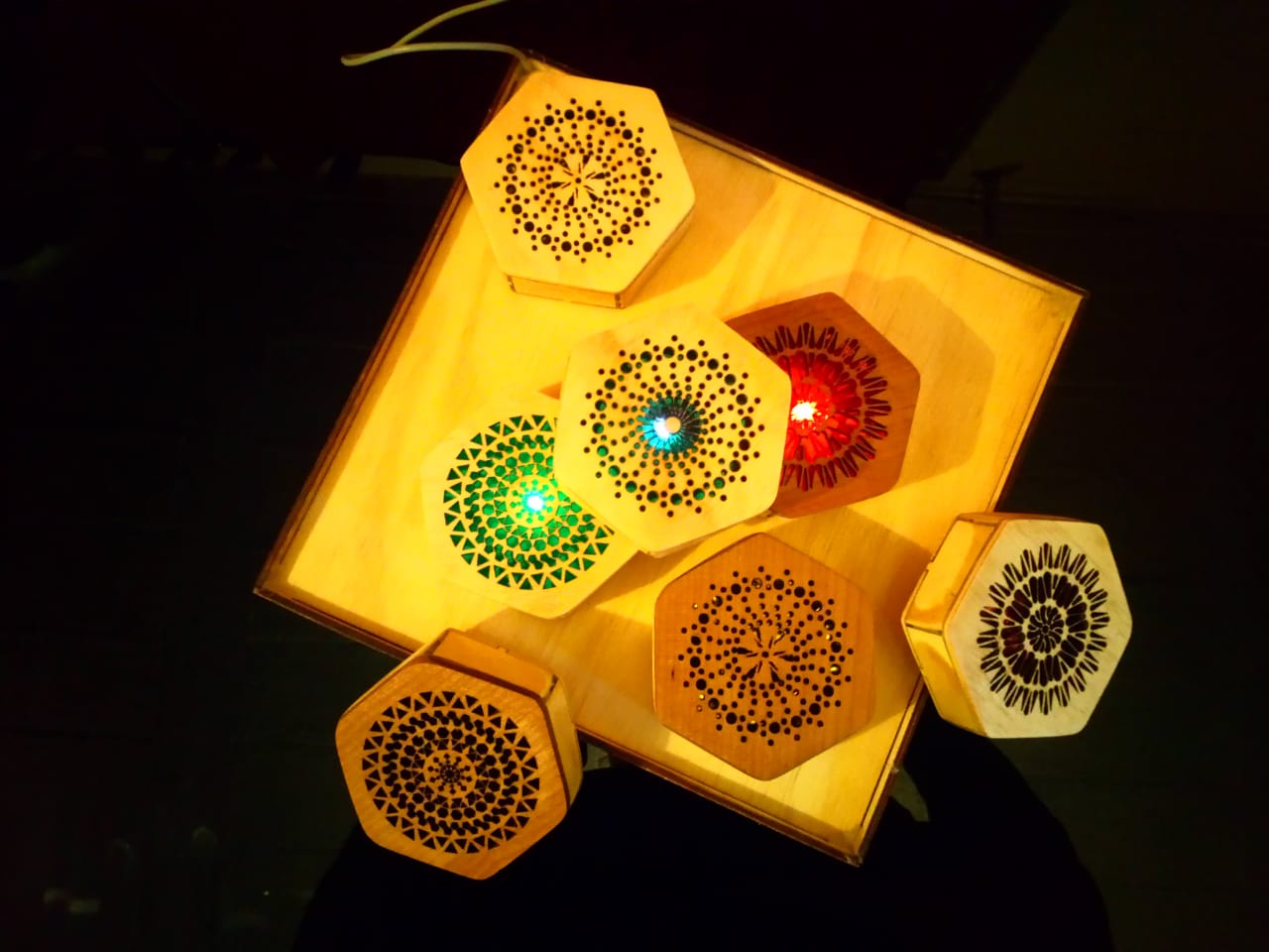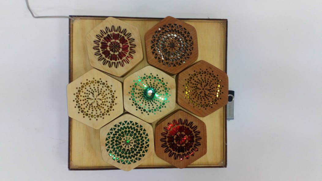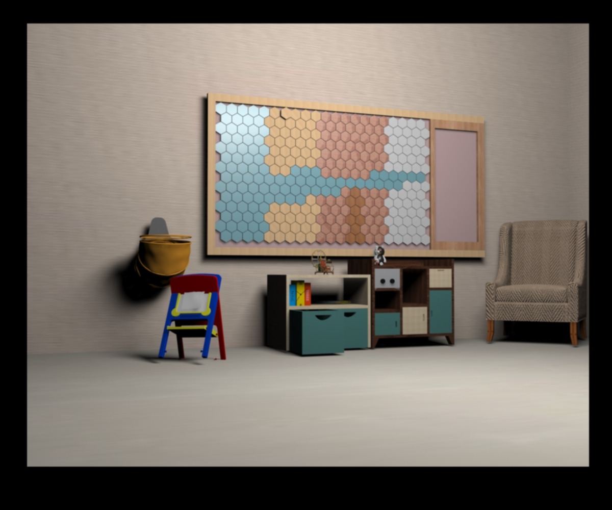 MOODU responde a la necesidad de generar ambientes didácticos que sean capaces de integrar círculos familiares y educativos; para el usuario ubicado dentro de la Primera Infancia (hasta los 6 años), con un rango etario perteneciente a la generación Alpha (2010 en adelante) y parte de 31,8% de pre escolares en situación de pobreza en Chile, identificados por la encuesta CASEN el año 2015. De este último porcentaje, un 65% de los niños ha estado expuesto a violencia en su comunidad, un 34% ha sido víctima de maltrato por parte de sus padres o cuidadores (siendo niñas las que presentan un 16% más de probabilidades frente a estos casos) y un 46% ha sido víctima de un delito común que involucra agresión física. Para extraer al usuario de su entorno potencialmente hostil e integrarlo a un ambiente de aprendizaje cómodo y amigable, es que MOODU está diseñado para ser instalado en centros JUNJI (Junta Nacional de Jardines Infantiles), en el Servicio de Protección de la Infancia y Adolescencia (ex CENAME), centros culturales, proyectos municipales y áreas de esparcimiento infantil ubicadas en centros asistenciales y de salud. MOODU es un algoritmo de construcción análoga, con interacción visual lumínica inalámbrica, que se desenvuelve mediante una dinámica de juego y busca ser capaz de generar aprendizaje a niveles de: • Desarrollo psicomotor y autonomía personal (fomentando el trabajo en equipo). • Desarrollo de su relación con el entorno social físico (mediante estrategias de juego). • Desarrollo de la comunicación y del lenguaje (a través de simbología básica e interpretación). Su mecánica presenta estructuras de madera que cumplen con las restricciones pertinentes a la edad del usuario, además de incorporar un sistema innovador en uso, con respecto a la interacción inalámbrica entre componentes electrónicos con cubiertas a base de polímeros naturales (Propuesta de Valor). El valor de la presencia del material en la estructura del proyecto, es apreciable en el tipo de madera (noble) utilizado en las superficies principales de las piezas del algoritmo análogo y su interacción y contraste con una base de madera terciada, tanto como en el grabado y corte mediante CNC Laser Cut, el cual permite explotar de forma funcional las características de este material.
