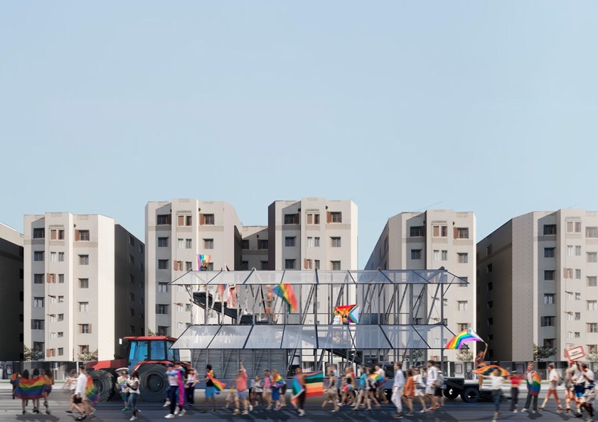 La innovación de este radica en su capacidad de ofrecer una solución arquitectónica móvil, inclusiva y sustentable a una problemática efímera pero constante: la falta de infraestructura básica en eventos masivos al aire libre. Lejos de responder con estructuras fijas o soluciones improvisadas, el proyecto propone un sistema modular y transportable que se instala temporalmente donde sea necesario, sin requerir desmontaje ni maquinaria pesada. Su diseño se inspira en los carros alegóricos, integrando valor simbólico y funcionalidad mediante una arquitectura que se desplaza, se adapta y transforma el espacio público de manera respetuosa y estratégica. La innovación también está en su materialidad: una combinación de madera tratada, acero liviano y lona microperforada permite construir una estructura resistente, confortable y reutilizable. El pabellón redefine el concepto de lo efímero como una herramienta activa de respuesta social, proponiendo una infraestructura versátil que más allá de su diseño se adapta a la necesidad del usuario.