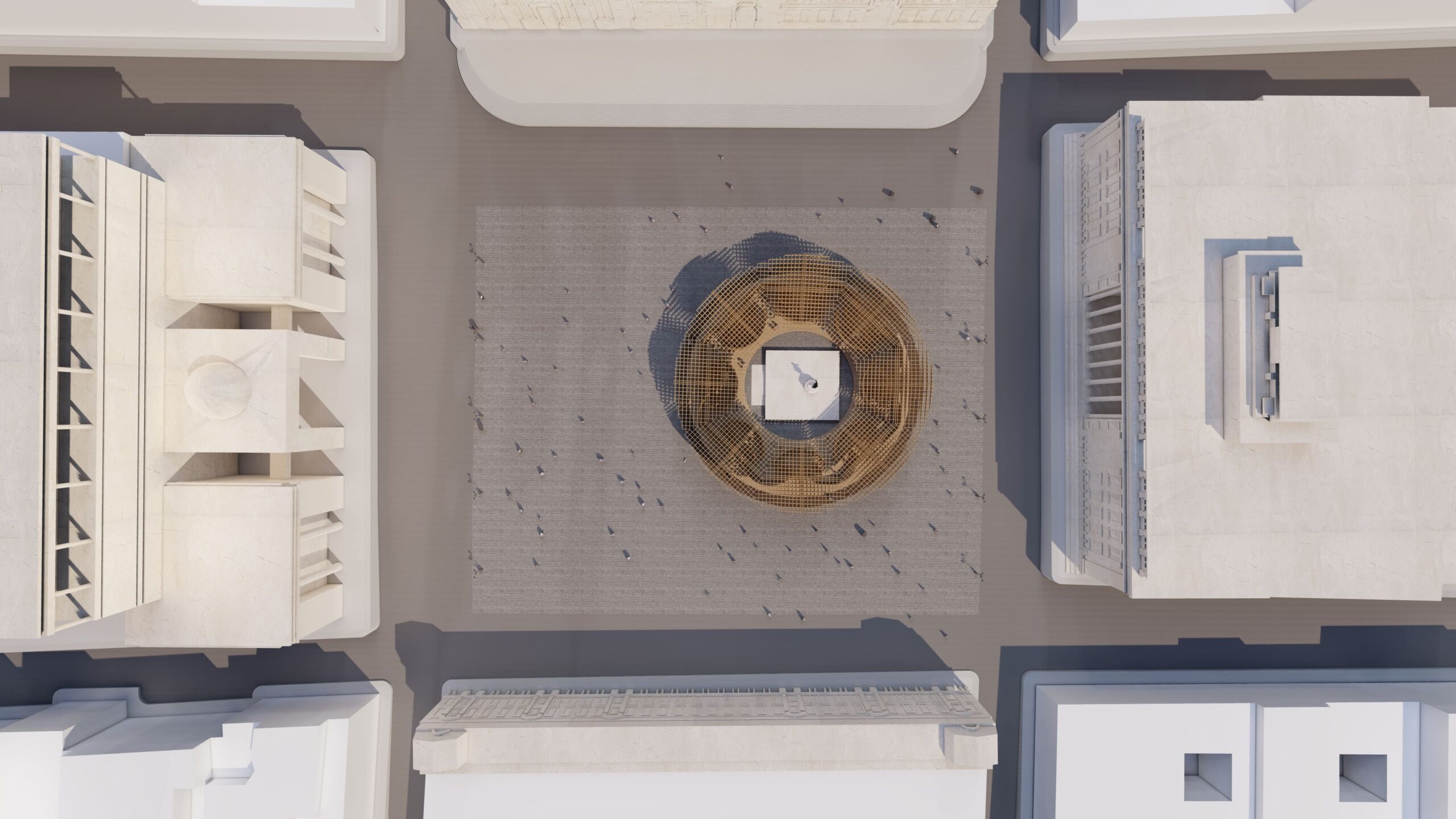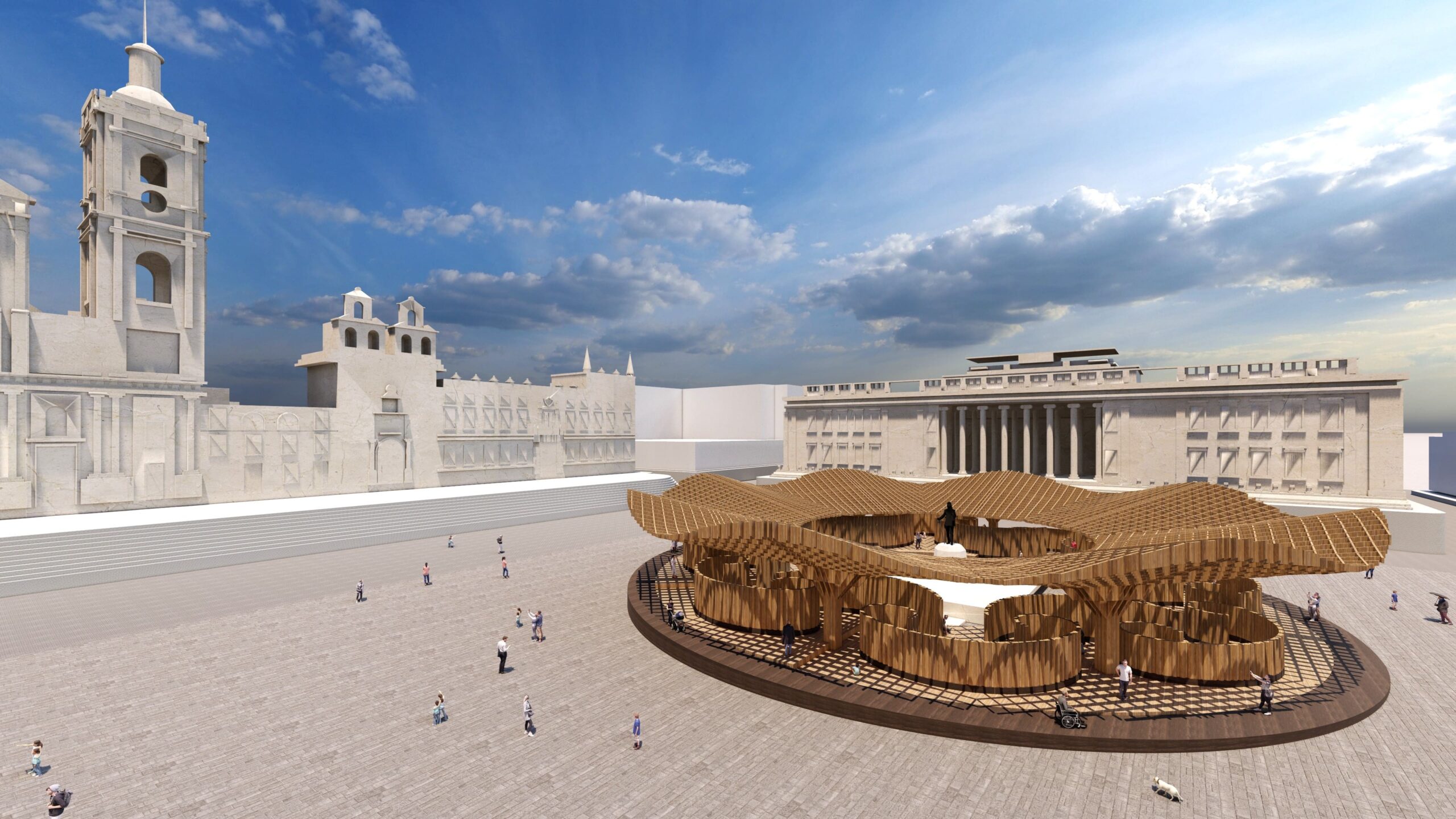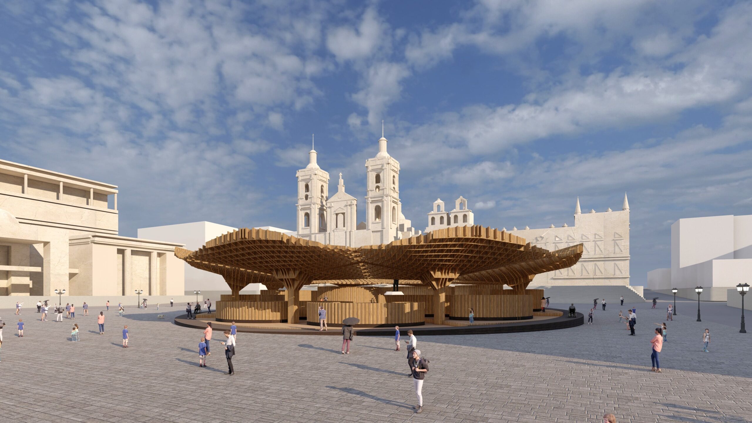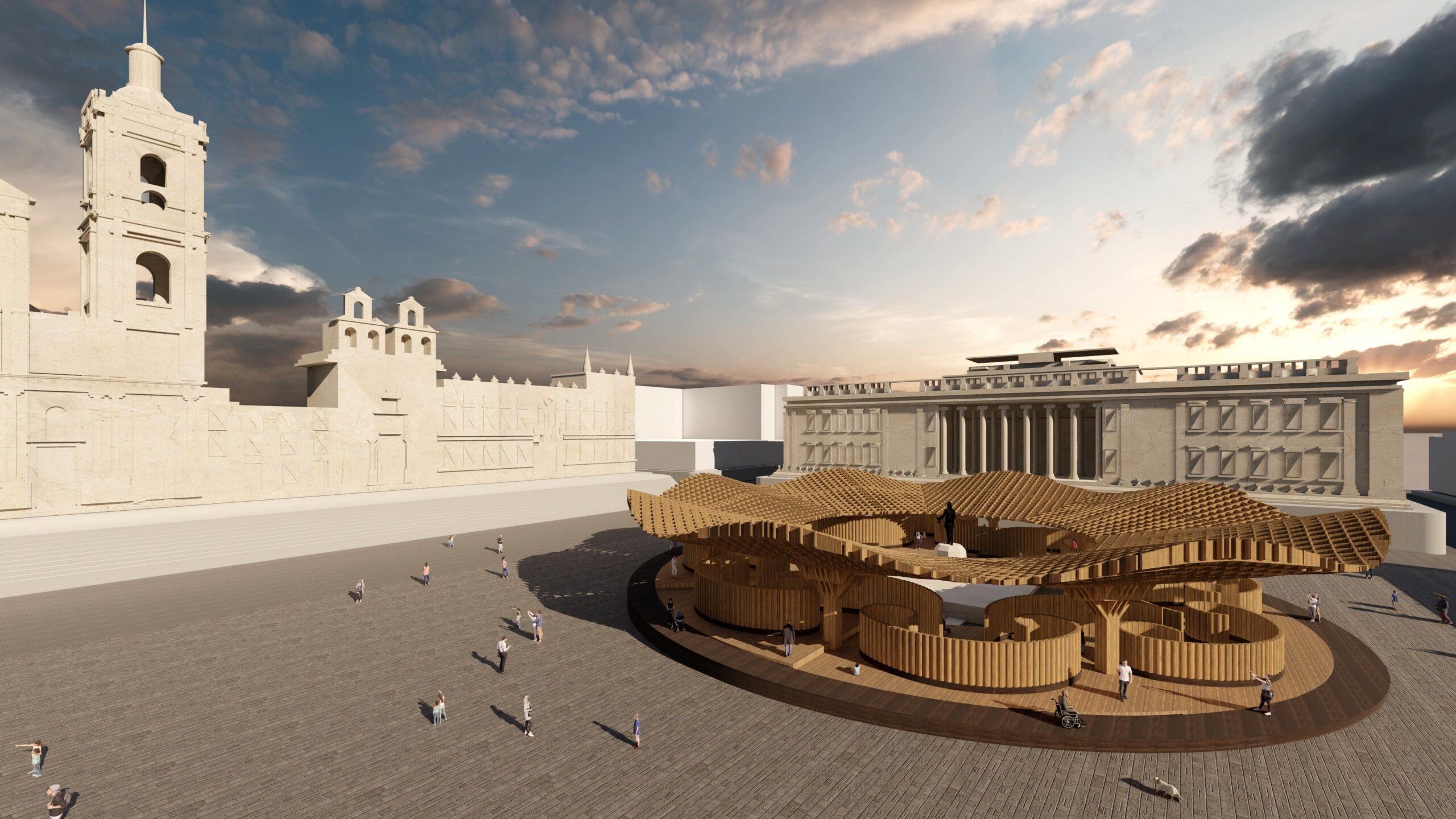 El proyecto nace como respuesta a la progresiva desvinculación entre la ciudad y su dimensión simbólica. En un contexto donde el espacio público ha sido reducido a lo funcional, y donde las huellas de las culturas originarias han sido desplazadas por narrativas dominantes, la propuesta plantea una arquitectura efímera capaz de reactivar los vínculos sensoriales entre el cuerpo, la memoria y el territorio. El pabellón propone una forma de habitar el espacio desde la contemplación, la pausa y el tránsito. Su geometría genera una experiencia que invita a reconocer lo ancestral desde un lenguaje contemporáneo, apostando por una presencia significativa dentro de el paisaje urbano. Su capacidad para desplazarse y adaptarse a distintos contextos le permite expandir una narrativa común entre territorios fragmentados. Cada emplazamiento se convierte en una oportunidad para reactivar la memoria, resignificar el espacio y devolver al entorno una dimensión cultural muchas veces olvidada.