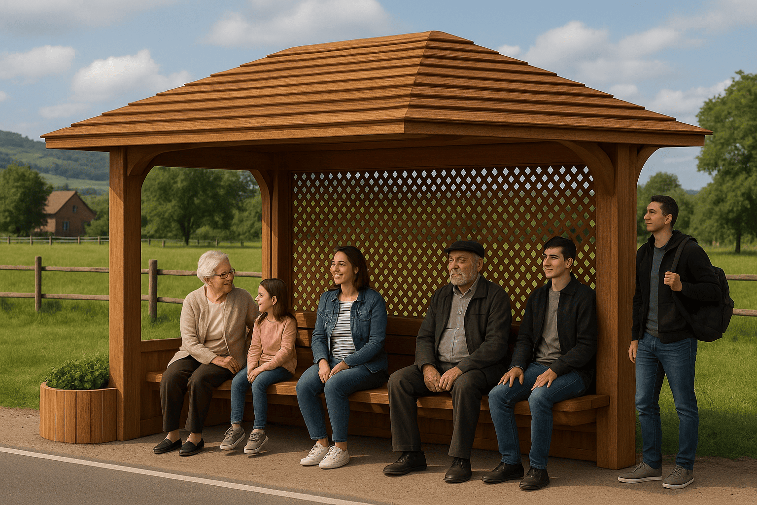 Elegimos la madera por ser un recurso renovable, accesible y altamente adaptable al entorno natural. Además, aporta calidez visual y se integra armónicamente con paisajes rurales y suburbanos.