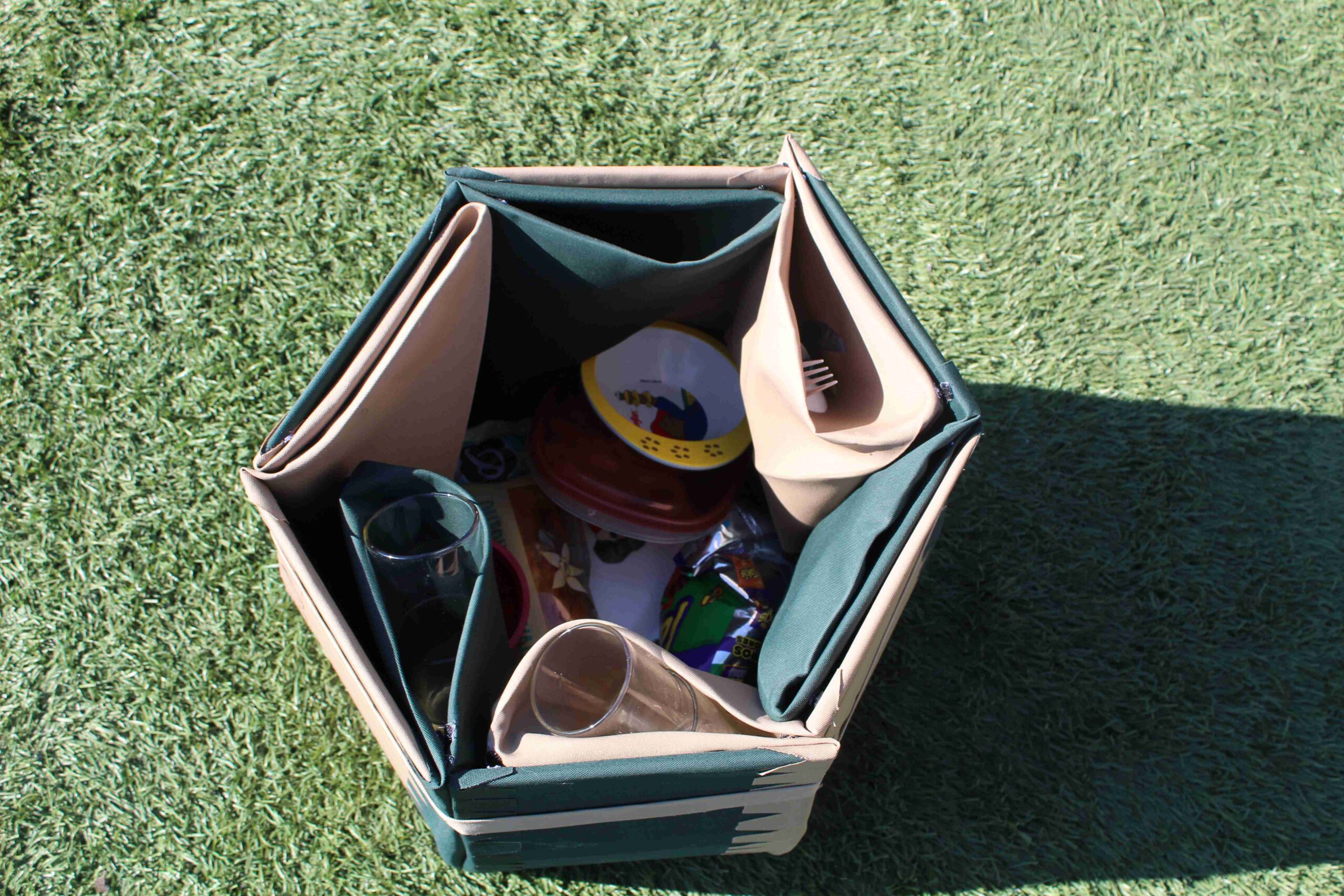 Picniké es una canasta diseñada para mejorar la experiencia del picnic. A primera vista, parece una canasta transportadora, pero al abrirla, se transforma en un espacio completo de reunión. Su interior se despliega en una superficie con forma de flor, compuesta por una mesa central hexagonal y seis pétalos que funcionan como base de apoyo y asiento. Al terminar su uso, el sistema se pliega nuevamente hasta volver a su forma original, lista para ser transportada.