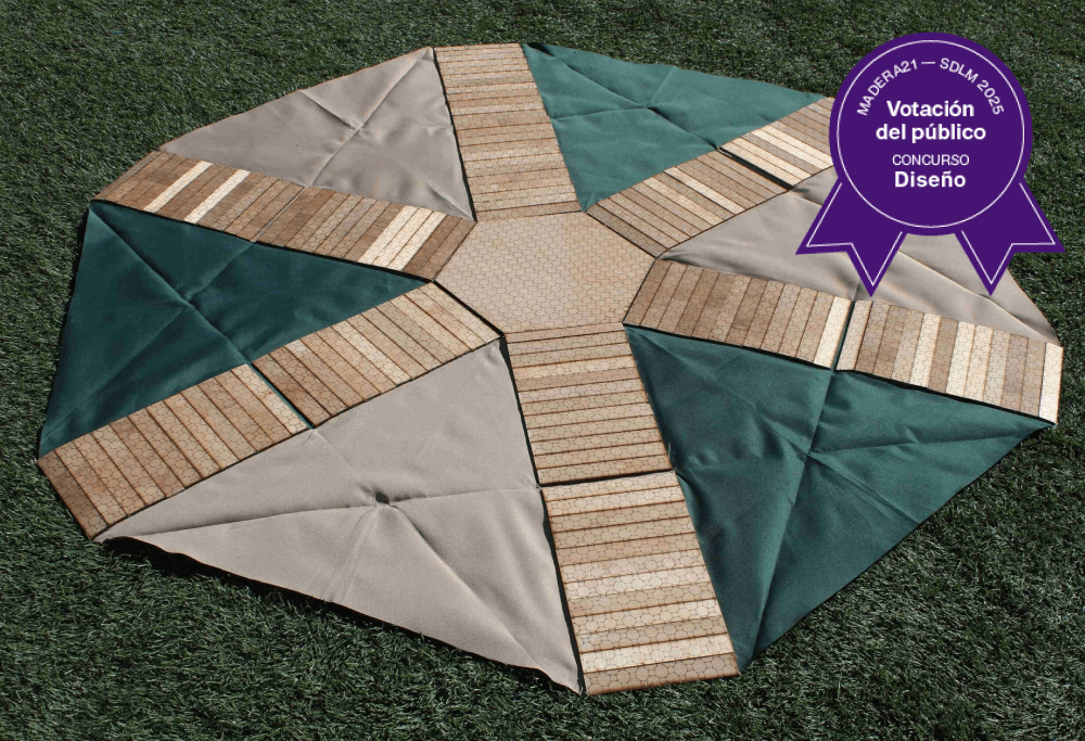 Se eligió terciado de 3 mm por su equilibrio entre flexibilidad, resistencia y peso. A través del corte digital se logró transformarlo en madera textil, lo que permitió reinterpretar sus propiedades mecánicas y adaptarlo al sistema plegable del producto. Se valoró su disponibilidad local, facilidad de mecanizado y potencial para producción artesanal o semindustrial.