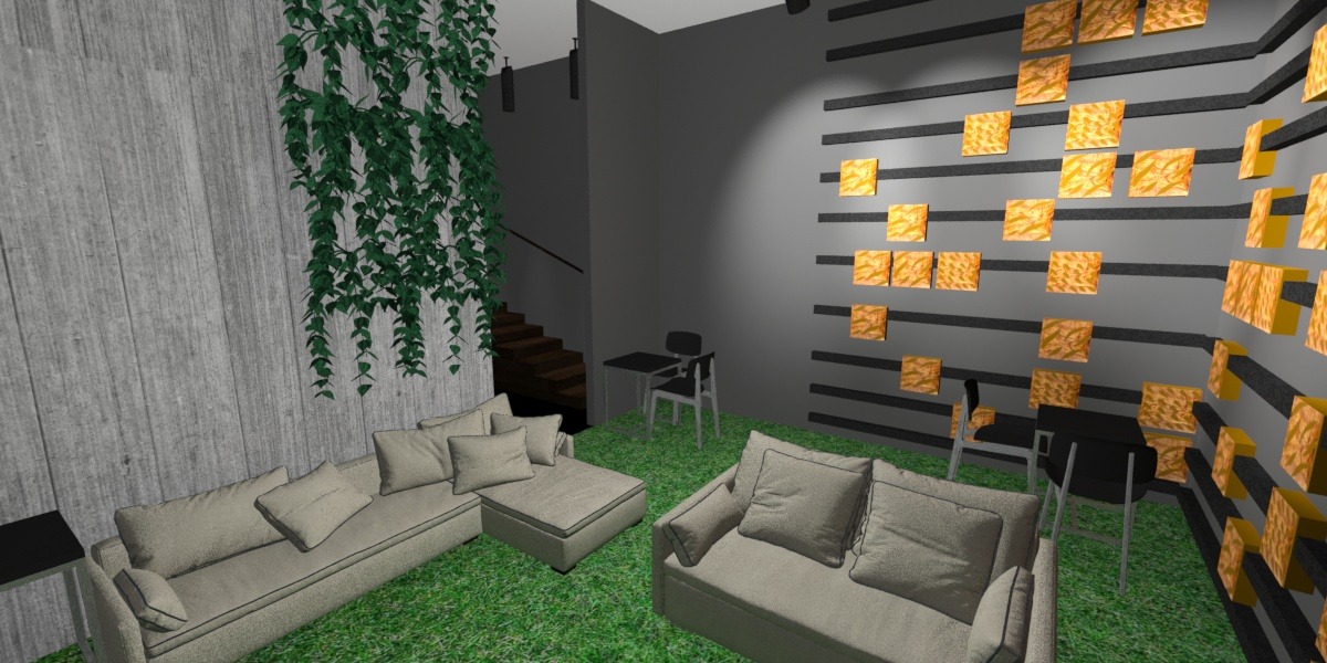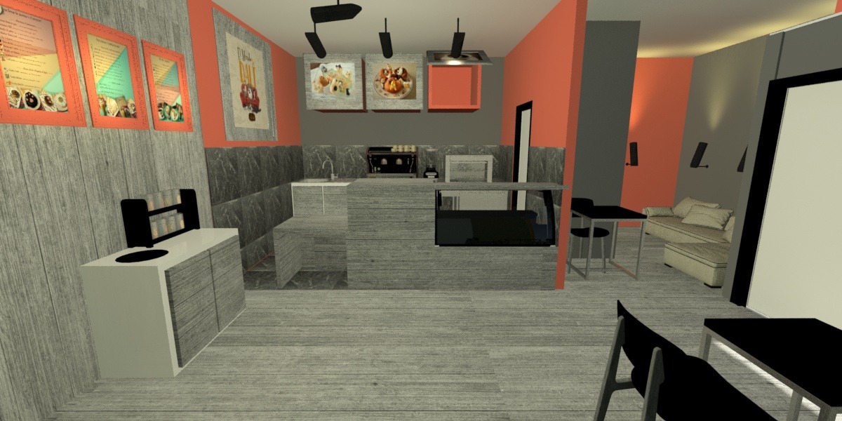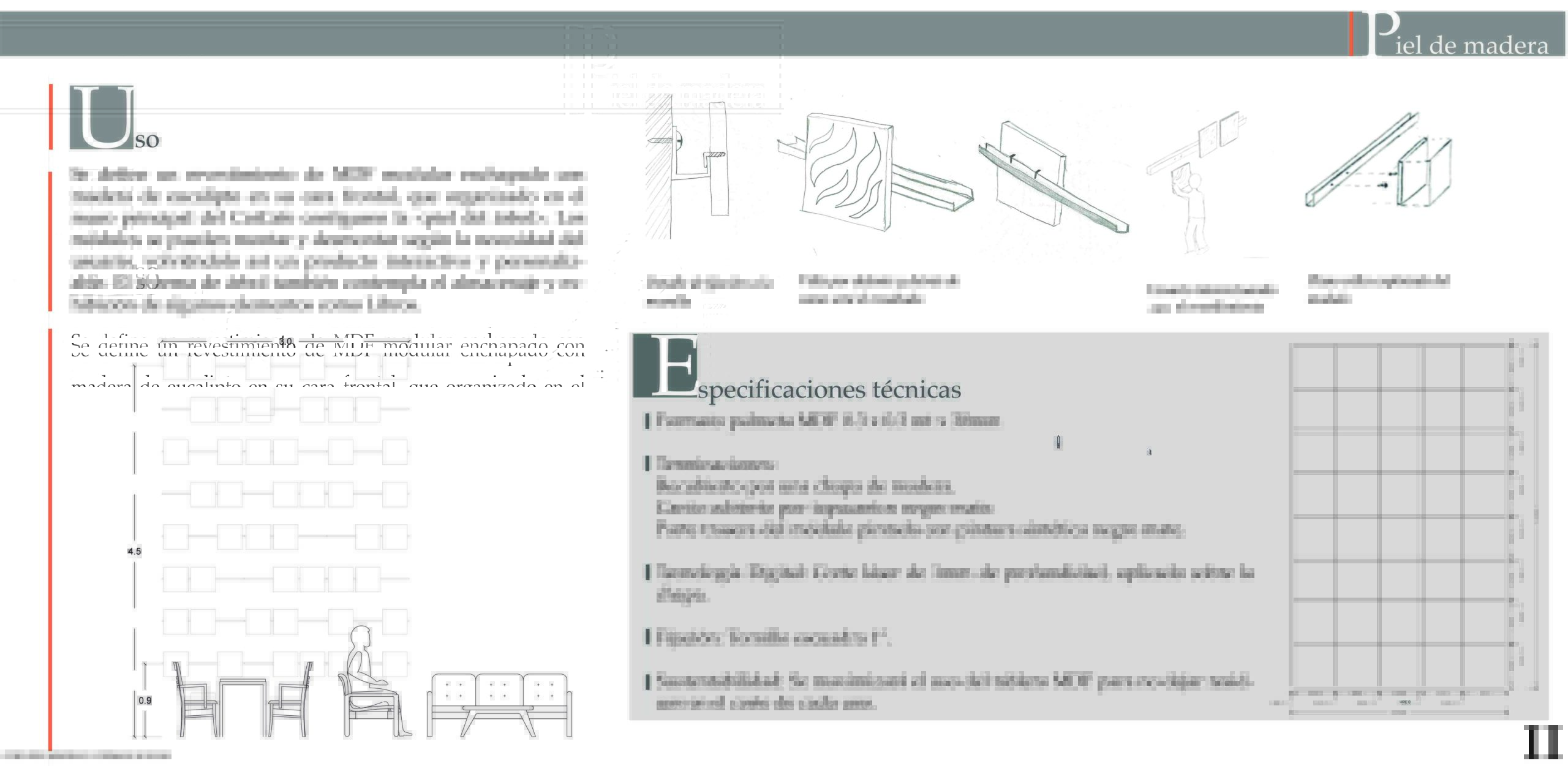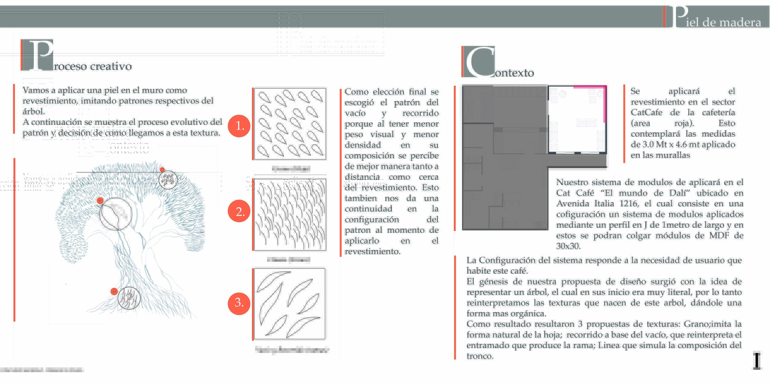 Nuestro revestimiento se aplicará en el Catcafé ubicado en avenida Italia, el cual consiste en una sistema de módulos aplicados mediante un perfil en J de 1 metro de largo y en estos se podrán colgar módulos de MDF de 30×30 los cuales estarán enchapados de eucalipto en su cara frontal, la parte trasera estará sellada con esmalte sintético color negro mate y los cantos estarán cubierto por un tapacantos color negro mate.