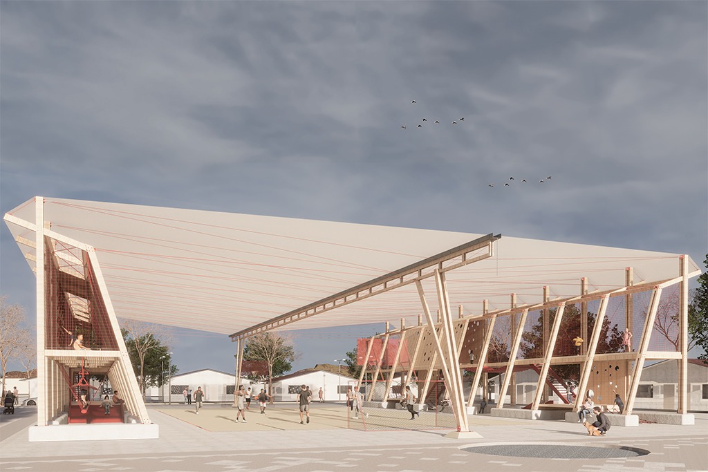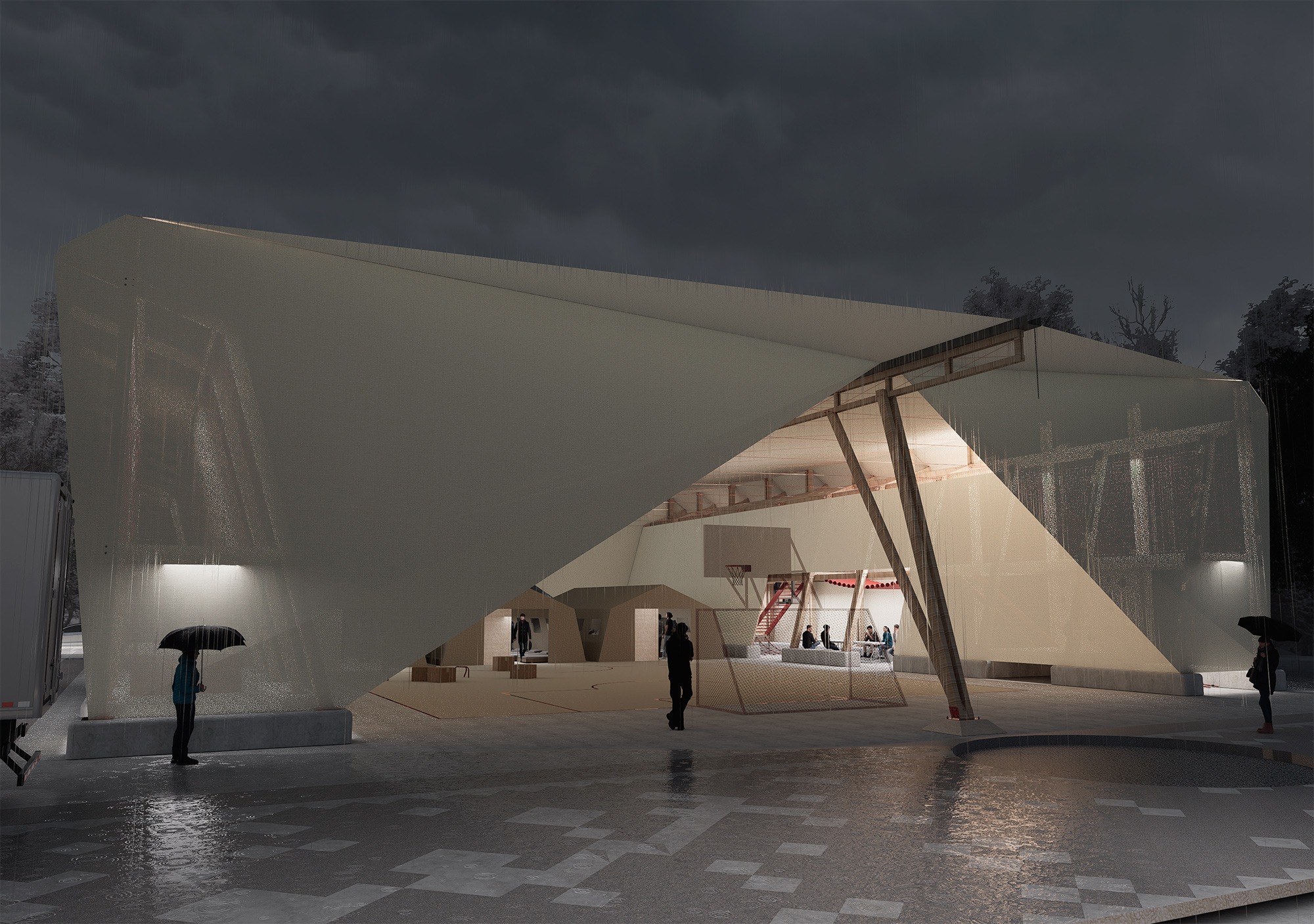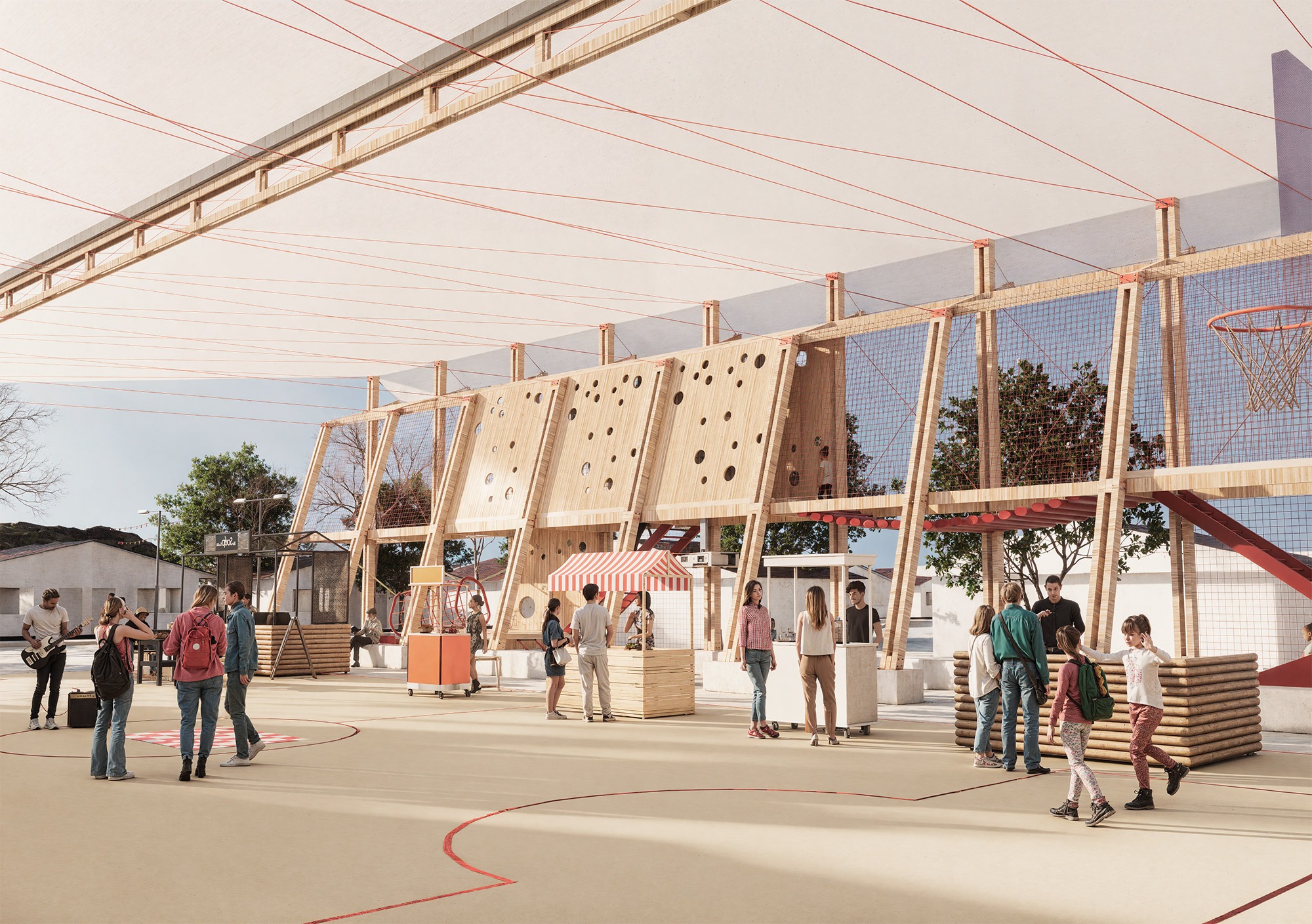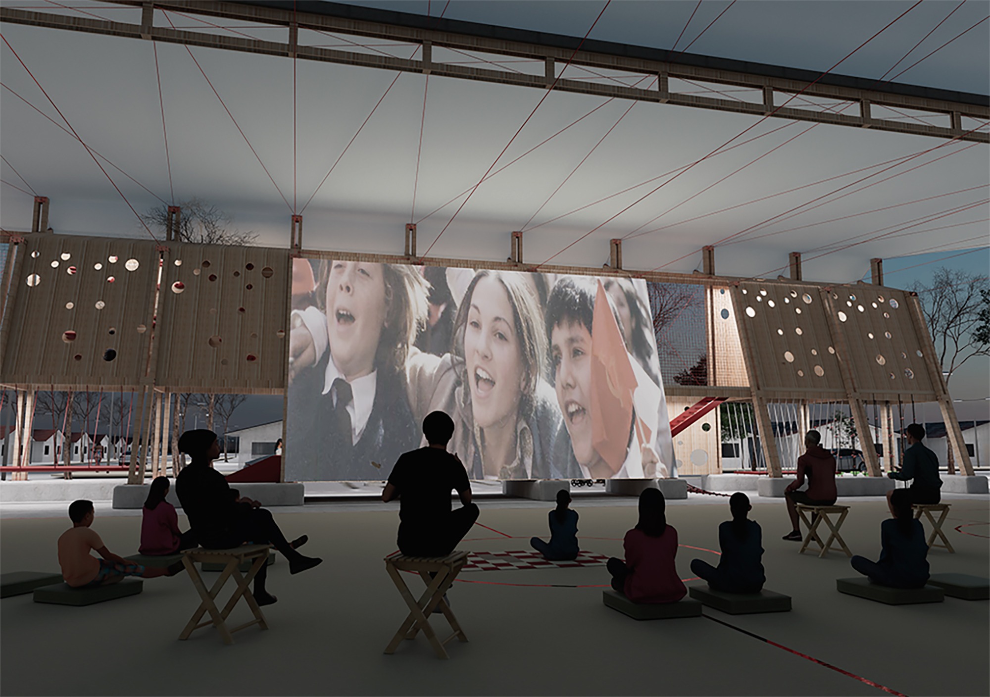La innovación del proyecto reside en su capacidad de activar y transformar espacios deportivos subutilizados, mediante una estructura polivalente que introduce nuevos programas culturales, recreativos, comunitarios y de emergencia, sin eliminar la función original de la cancha, logrando de esta manera integrar la efimeridad a la propuesta. A través de un sistema de módulos definidos pero ajustables, se integran zonas lúdicas, escenarios culturales, ferias vecinales o espacios de resguardo, manteniendo una estructura base común.