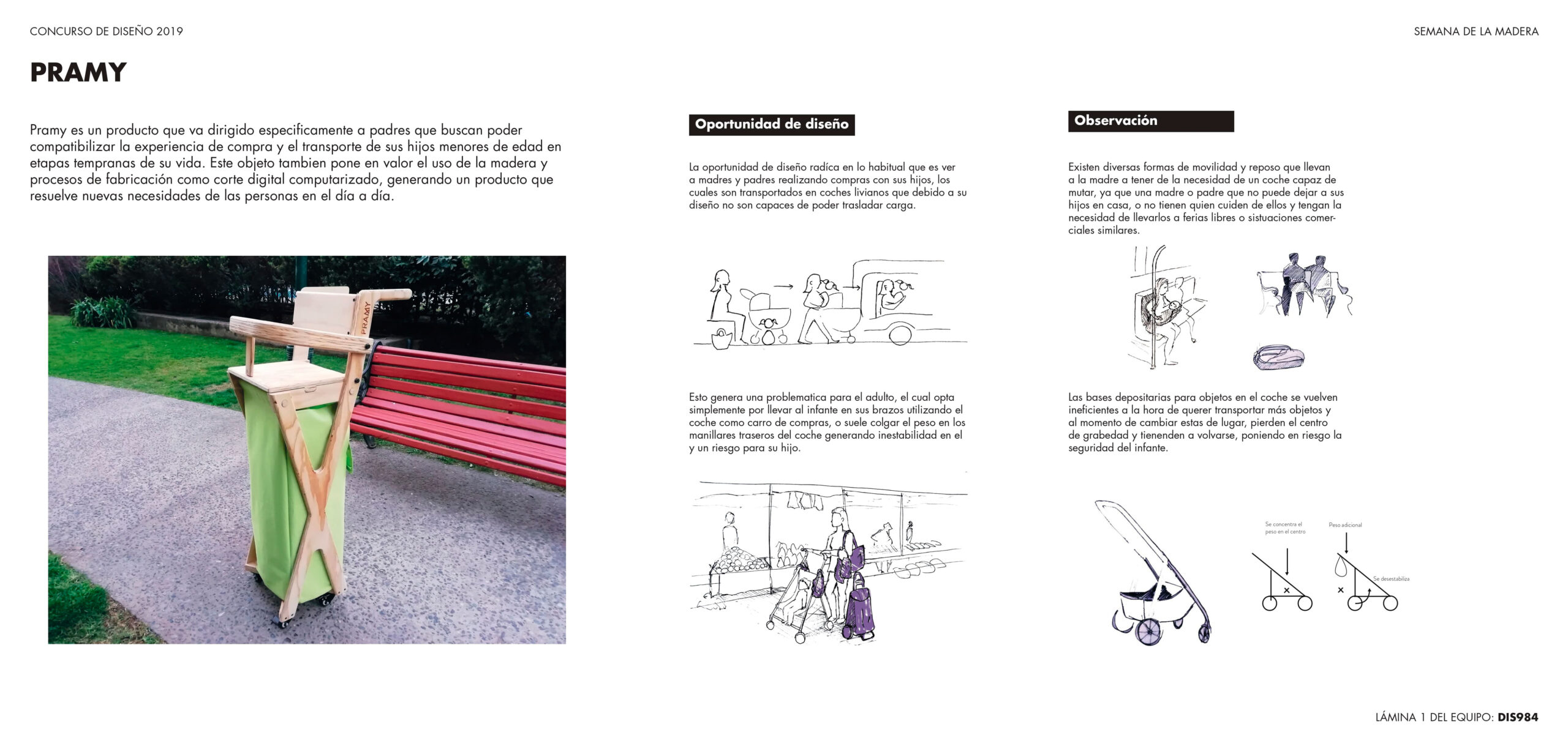 PRAMY es un proyecto de carácter social que busca poder mejorar la experiencia de comprar cuando se debe transportar a menores en coches u otros medios de transporte para infantes a través de un producto versátil que permita poder compatibilizar el desplazamiento de carga y el de un menor.