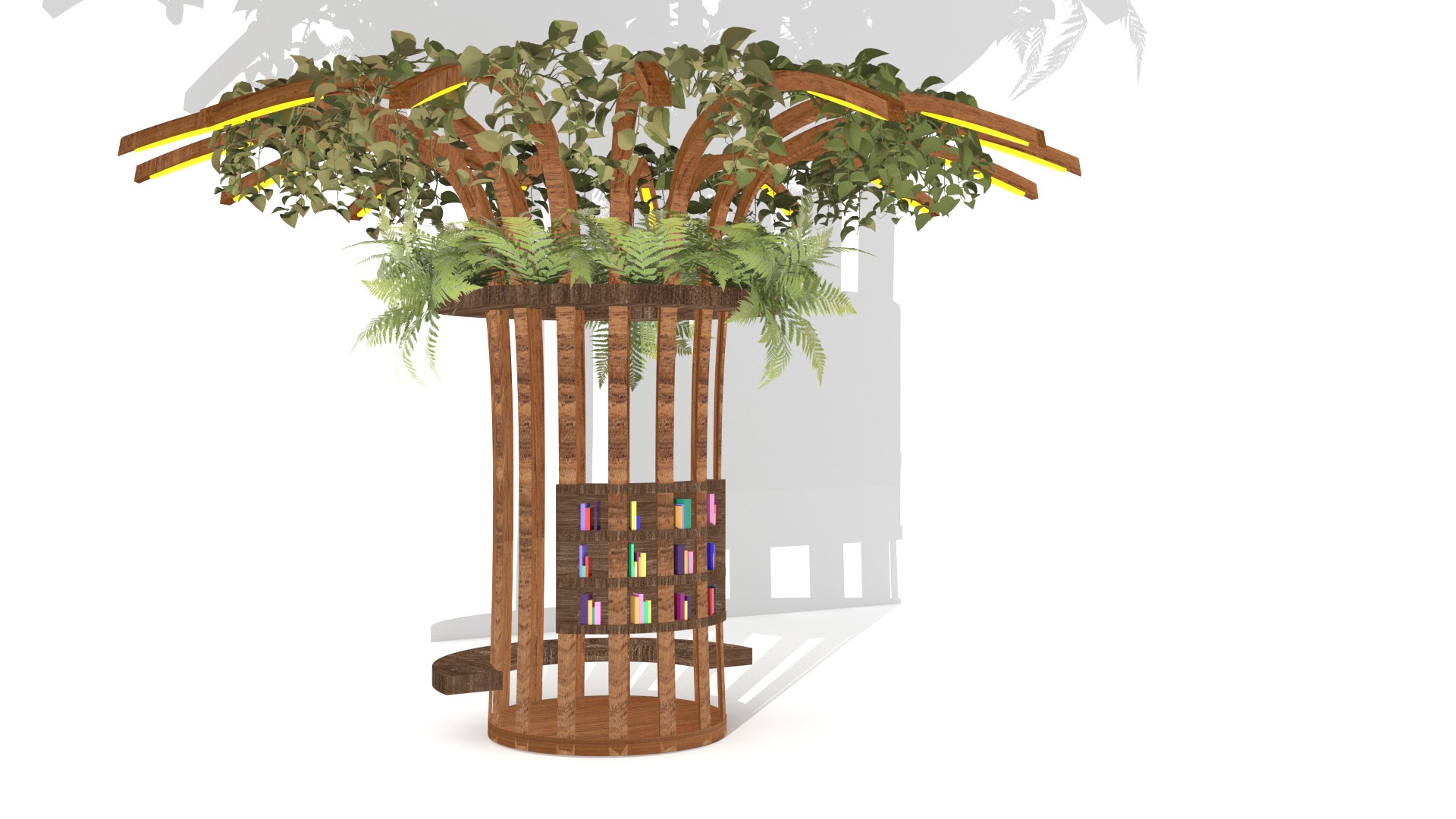 RootLight es una luminaria multifuncional pensada para espacios públicos urbanos, especialmente diseñada para ser instalada en el Bandejón Los Héroes, en Santiago de Chile. Construida completamente en madera, su estructura no solo cumple con la función de iluminación, sino que también permite sentarse, leer, descansar y fomentar el intercambio de libros. Inspirada en el concepto de biblioteca comunal, RootLight promueve la cultura, la participación ciudadana y el encuentro social. Además, incorpora vegetación para reforzar la conexión con la naturaleza, generando un entorno más fresco, sombreado y acogedor.