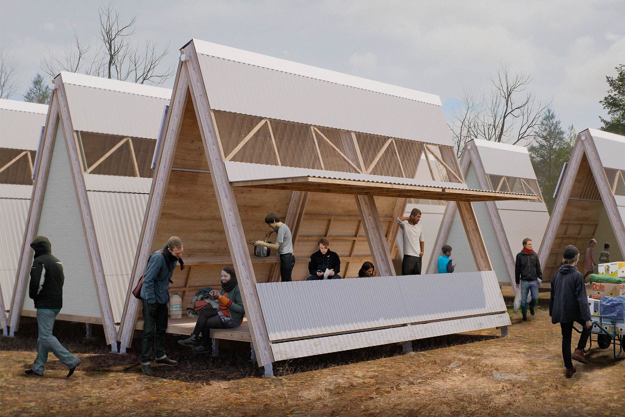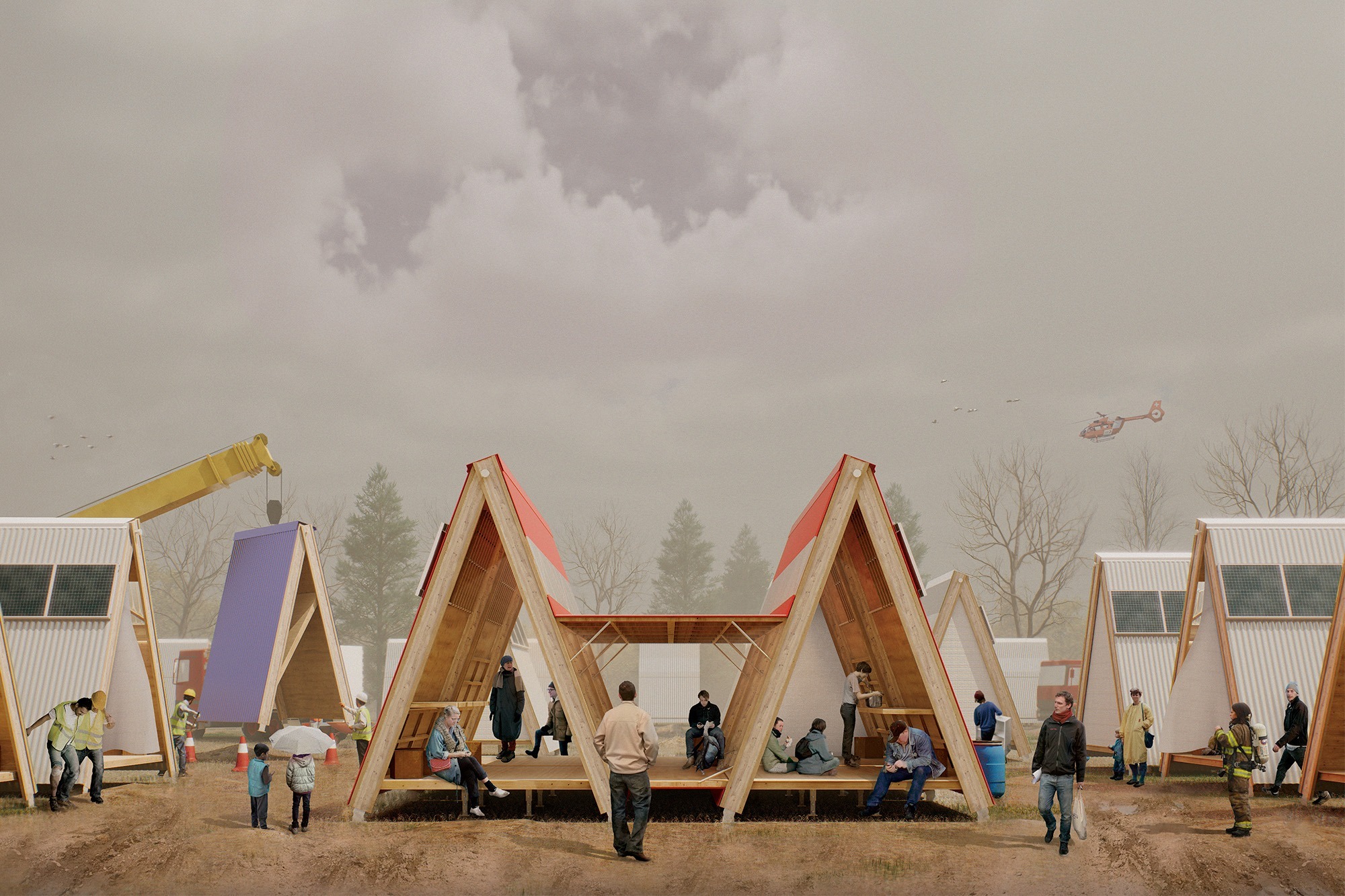 A partir del concepto de “resiliencia desplegable” la propuesta se sustenta en la memoria histórica del terremoto de Valdivia de 1960, recuperando el espíritu formal y conceptual de los “Rucos”: estructuras de emergencia en base a madera recuperada que surgieron tras el mayor terremoto registrado en la historia de la humanidad. Al reinterpretarlos desde una mirada contemporánea, técnica y replicable capaz de adaptarse a las crisis del siglo XXI, el proyecto propone un dispositivo modular industrializado en base a madera, el cual es plegable y de montaje inmediato, permitiendo una logística eficiente de armado, almacenamiento, transporte y montaje. Los Rucos pueden ser transportados en camiones convencionales o mediante transporte aéreo en casos extremos, permitiendo su instalación sin necesidad de herramientas ni mano de obra especializada, lo que asegura la intervención ágil, descentralizada y adaptable ante una situación de emergencia, mejorando significativamente los mecanismos de operación y reacción a nivel nacional.
