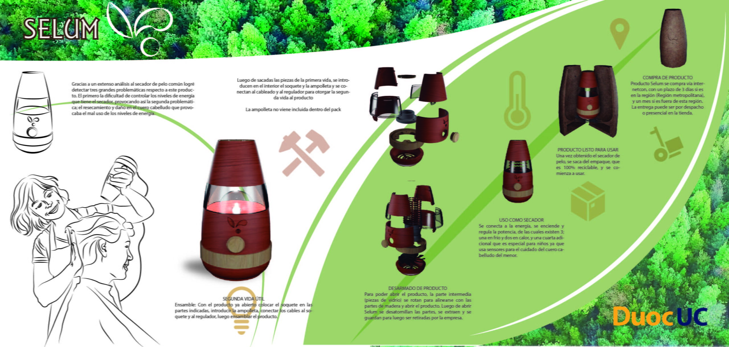 Secador de pelo con segunda vida útil. elaborado a partir de maderas nativas con alto valor en su primer y segundo uso.