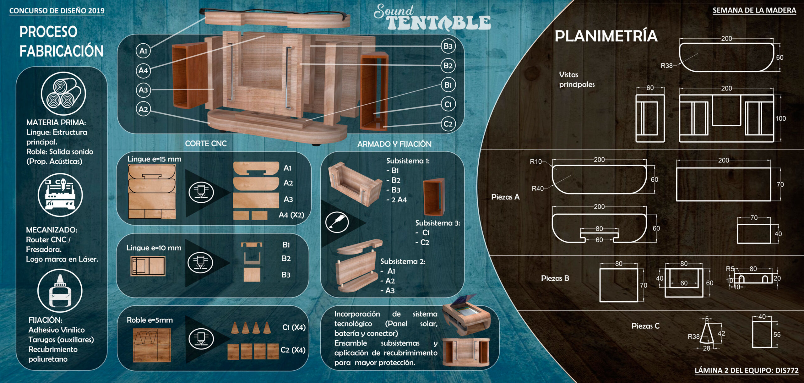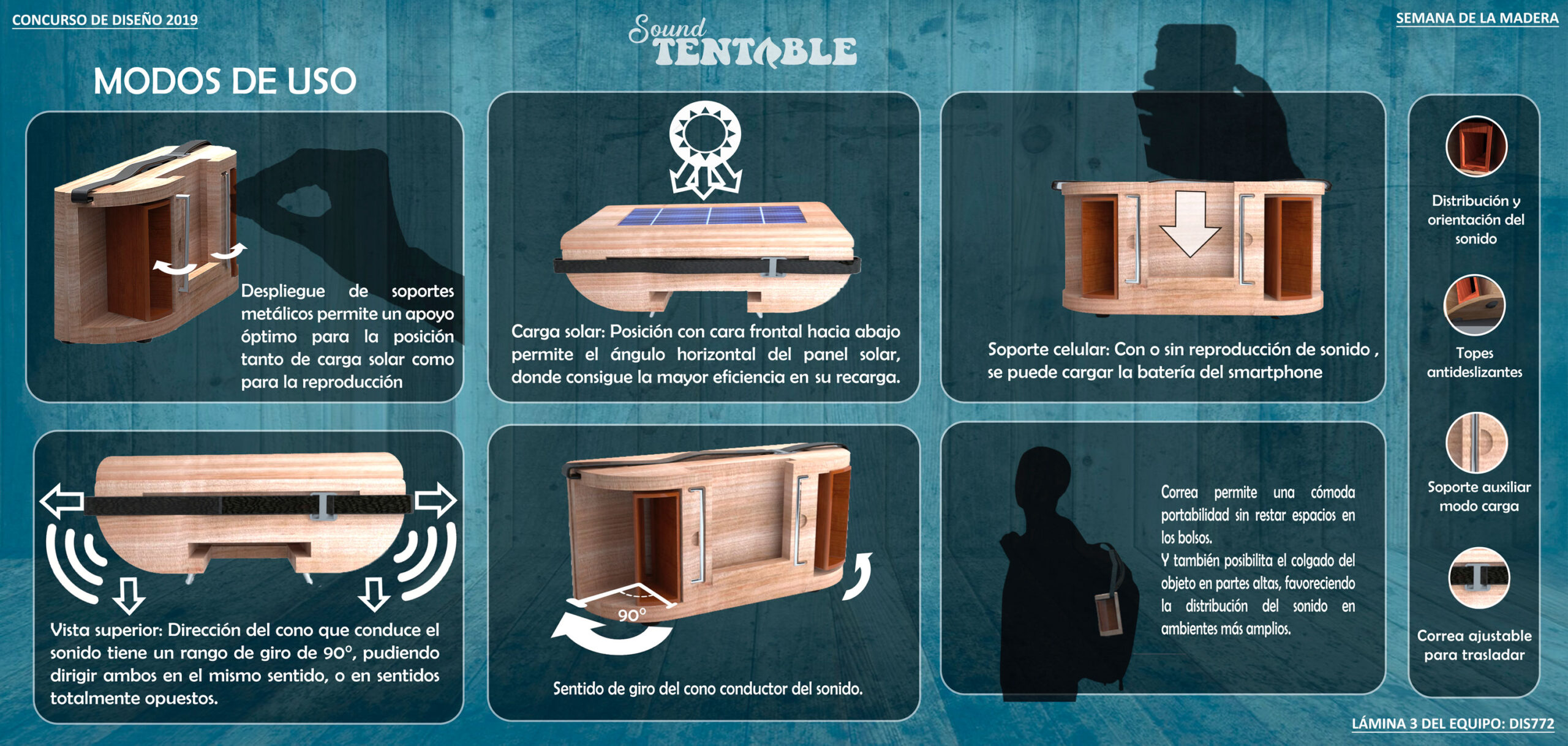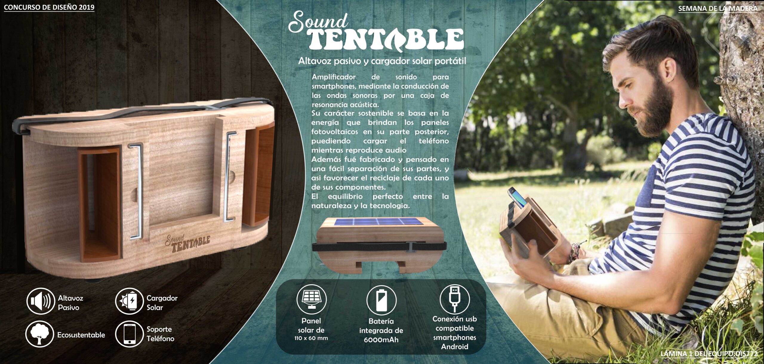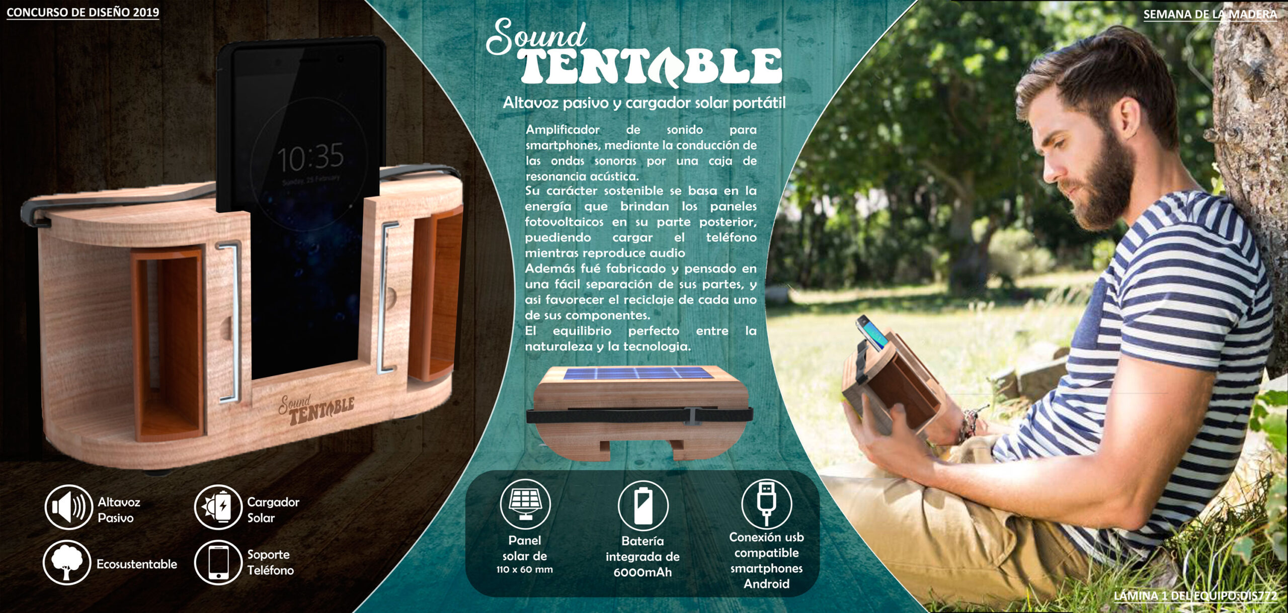 Altavoz pasivo y autosustentable. Genera el aumento de la percepción sonora mediante la orientación de las ondas. Esto último sin necesitar de consumo energético extra, más que el del teléfono que reproduce la música. Además funciona como cargador solar portátil, pudiendo recargar el teléfono celular independientemente de si está o no reproduciendo.