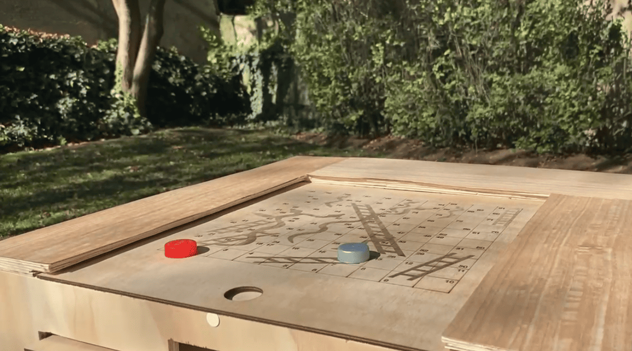 Pensada para uso en exteriores, TableChange cuenta con una estructura firme y estable, compuesta por terciado de pino y terciado de eucalipto rosado previamente tratados. Esta selección de materiales garantiza mayor durabilidad en ambientes al aire libre y alta resistencia a hongos, termitas e insectos. Su diseño, junto con la incorporación de juegos atemporales, facilita la conexión entre el entorno y la comunidad, reuniendo a distintas generaciones en un espacio creado para fomentar la unión y la comunicación.