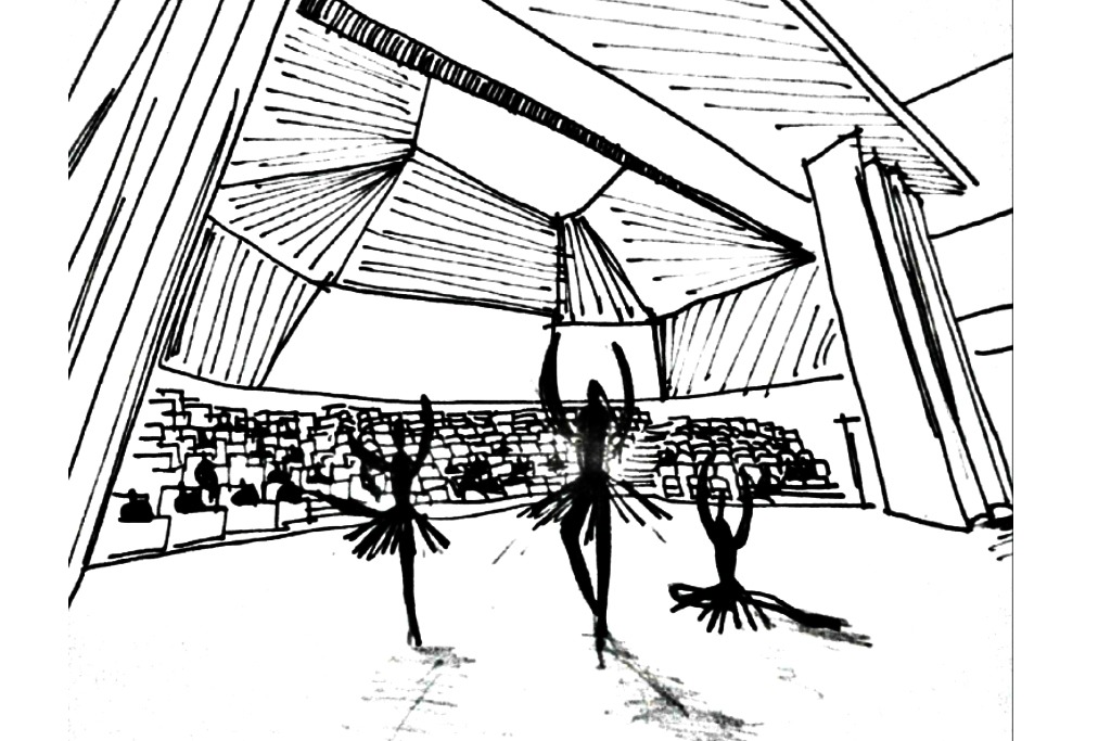 Formalmente el recinto se apropia de elementos arraigados culturalmente para potenciar, precisamente, el arraigo con la comunidad, esto se propone al conceptualizar una roca carbonizada, proveniente del Volcán Villarrica (en sus muros exteriores se proyectan elementos en madera de roble carbonizado para asemejar este concepto). En su espacialidad, el proyecto se apropia aún mas de esta condición rocosa al proyectar espacios amplios bajo la lógica de quiebres interiores. De esta manera se presentan dos espacios jerárquicos, el primero es el foyer, espacio en donde una triple altura crea el primer grado de acercamiento desde el entorno natural hacia un interior controlado, y el segundo espacio es la caja escénica, en donde los elementos rocosos se apropian de los configurantes espaciales, que al poseer tonos opacos y secos logran jerarquizar el escenario en contraste con el trabajo lumínico presente. Funcionalmente se presenta un núcleo de servicios que separa y controla, desde tras bambalinas, ambos espacios. Posee conexión exterior con la caja escénica para facilitar el acceso a escenografía y circulaciones verticales que llevan a oficinas, salas de ensayo, una cafetería y a una terraza que desdibuja el límite interior y exterior del recinto.