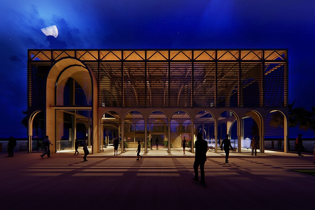 Gestualmente el proyecto intenta desprenderse de la densidad de edificación vertical de la península, contraponiéndose a esta lectura con un volumen predominantemente horizontal, evocando a un elemento flotante sobre el océano.