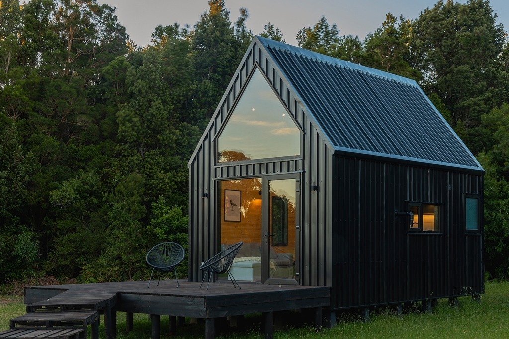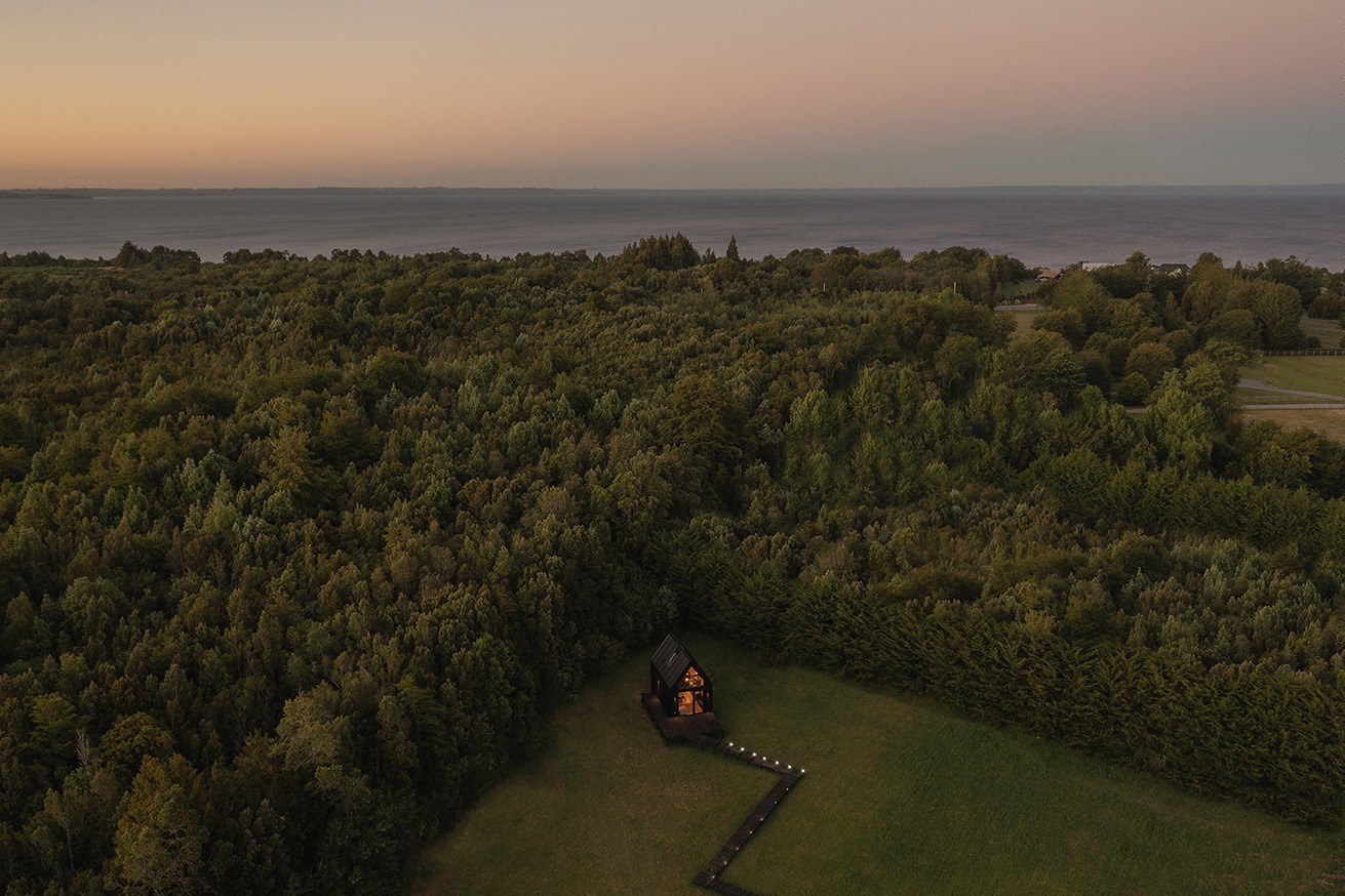 Tiny Auro contribuye al fortalecimiento de la cadena de valor de la madera al utilizar un recurso obtenido íntegramente en el mismo territorio donde se emplaza. La zona cuenta con carpinteros y maestros mueblistas de alto nivel, depositarios de técnicas y conocimientos constructivos transmitidos por generaciones. Al optar por soluciones constructivas en madera, el proyecto no solo promueve el uso de un material renovable y local, sino que también apoya la continuidad de un oficio fundamental para la identidad cultural y productiva del sur de Chile. La elección de la madera responde también a su capacidad única de generar experiencias sensoriales. En un contexto turístico, el visitante busca ver, oler y tocar la madera, vivir su calidez natural y asociarla al paisaje sureño. Estar en un interior envuelto completamente en madera, con una estufa encendida, es parte esencial del valor intangible que Tiny Auro ofrece.